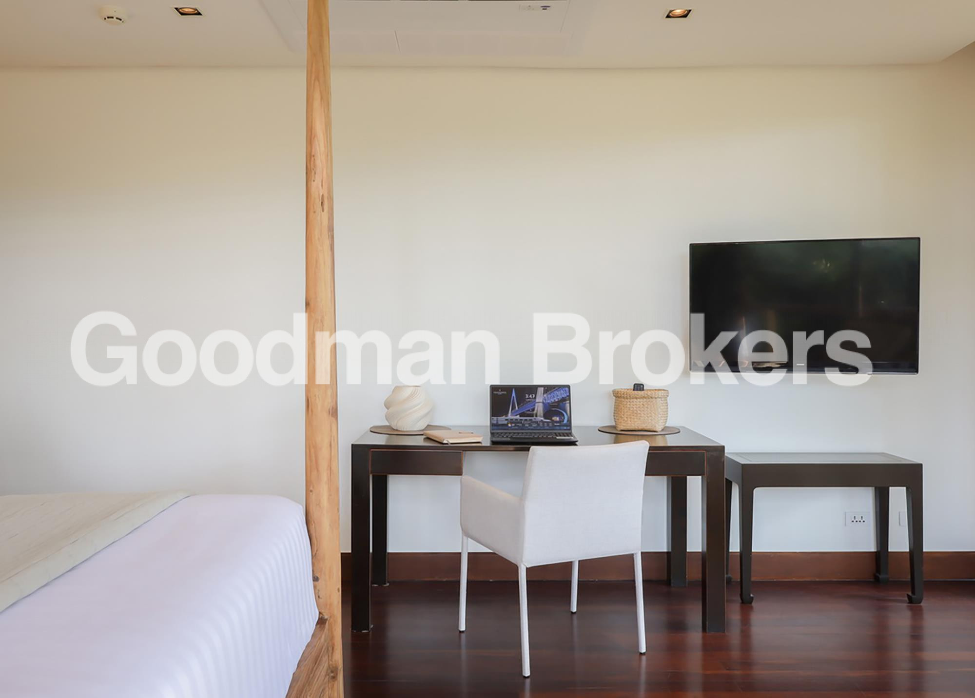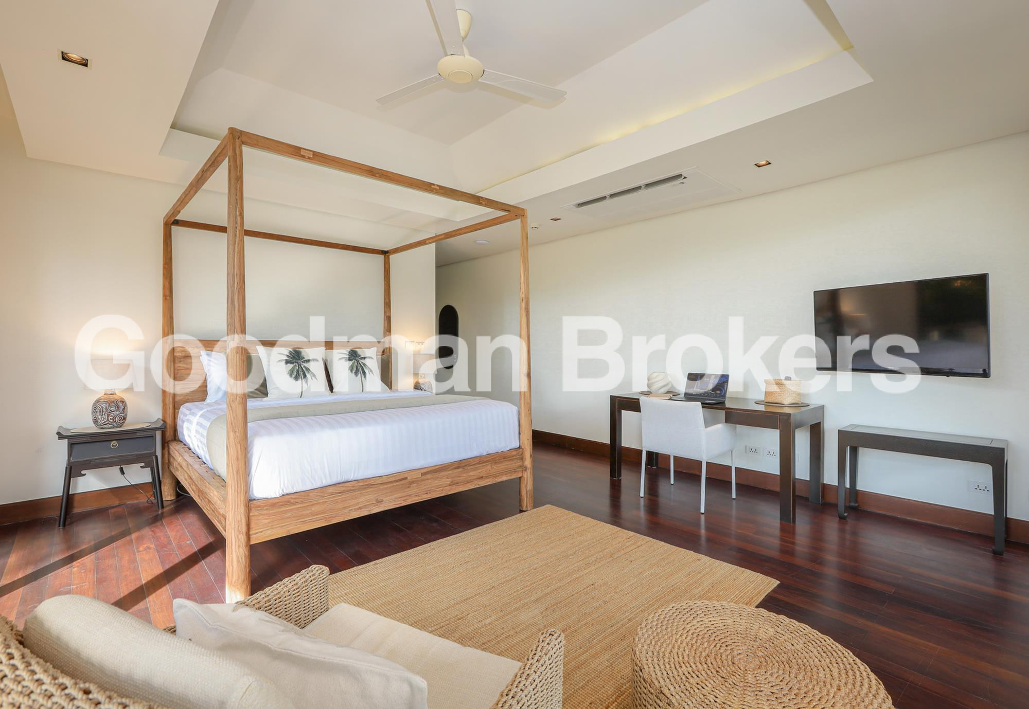 宽敞的开放式起居空间与阳光普照的露台和私人无边泳池相连,您可以在这里尽情享受海风拂面和壮丽日落的惬意时光。每间卧室都配备独立卫浴和宁静雅致的装饰,为您带来极致舒适的体验。