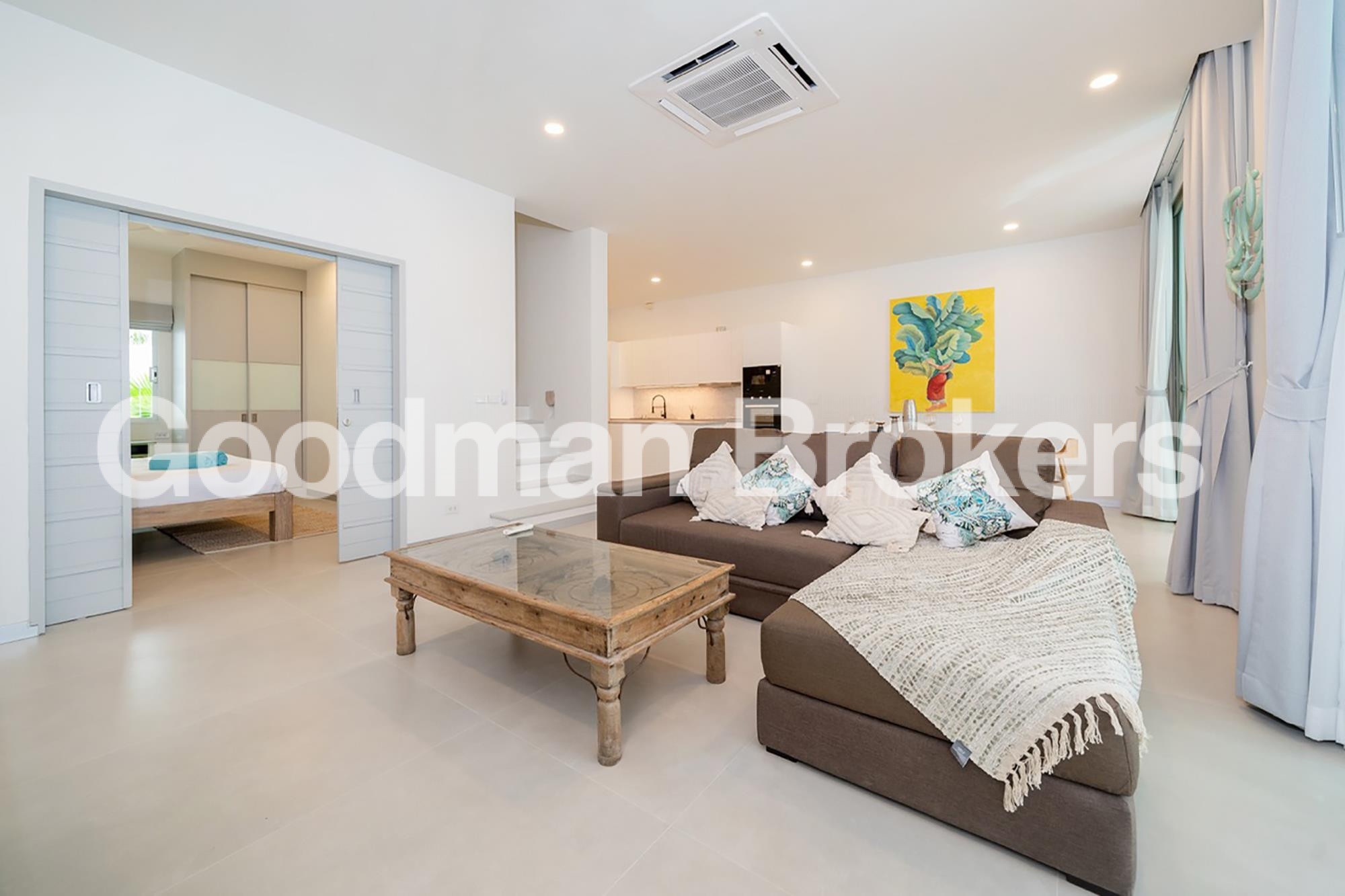 这栋位于邦涛的全新别墅现正出售,距离海滩仅几步之遥,为您带来精致的热带生活体验。这栋优雅的两层别墅融合了现代建筑风格和温暖的自然元素,完美平衡了时尚与舒适。