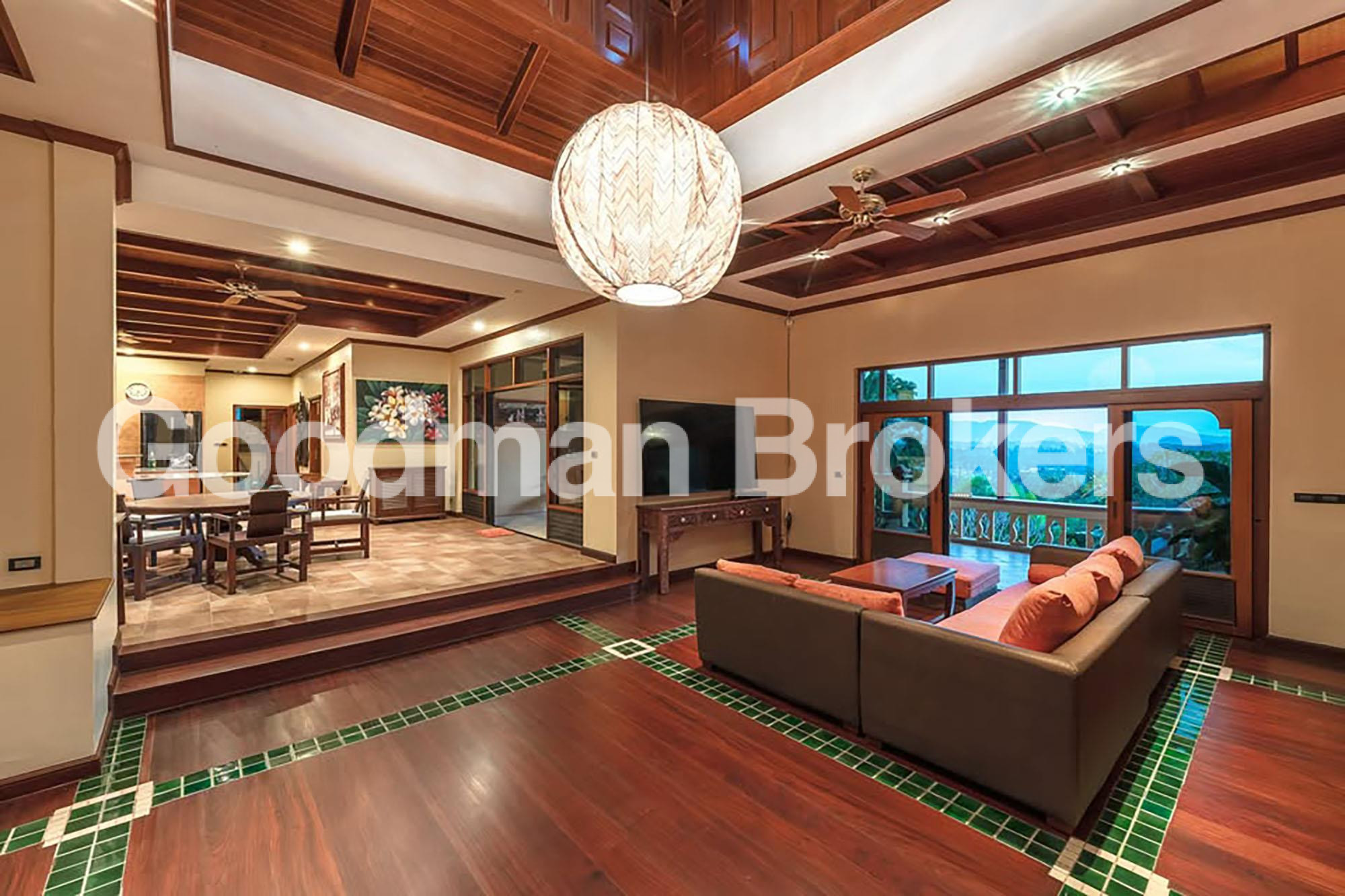 这栋豪华别墅位于著名的拉扬地区,坐落在朝南的山坡上,可饱览山谷全景和部分海景。别墅总居住面积为1830平方米,占地5400平方米,拥有精心设计的热带花园,位于一个安全私密的封闭式社区内,距离拉扬海滩仅2公里。