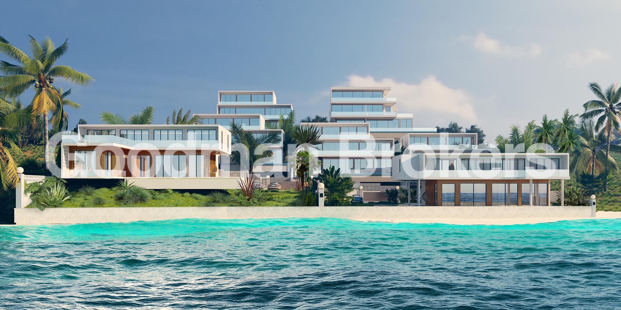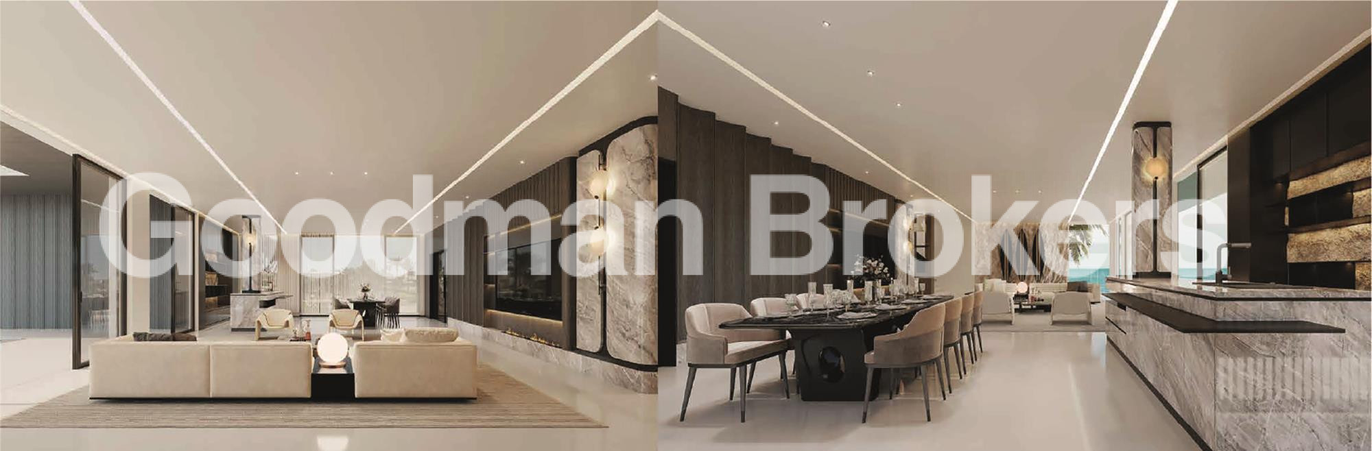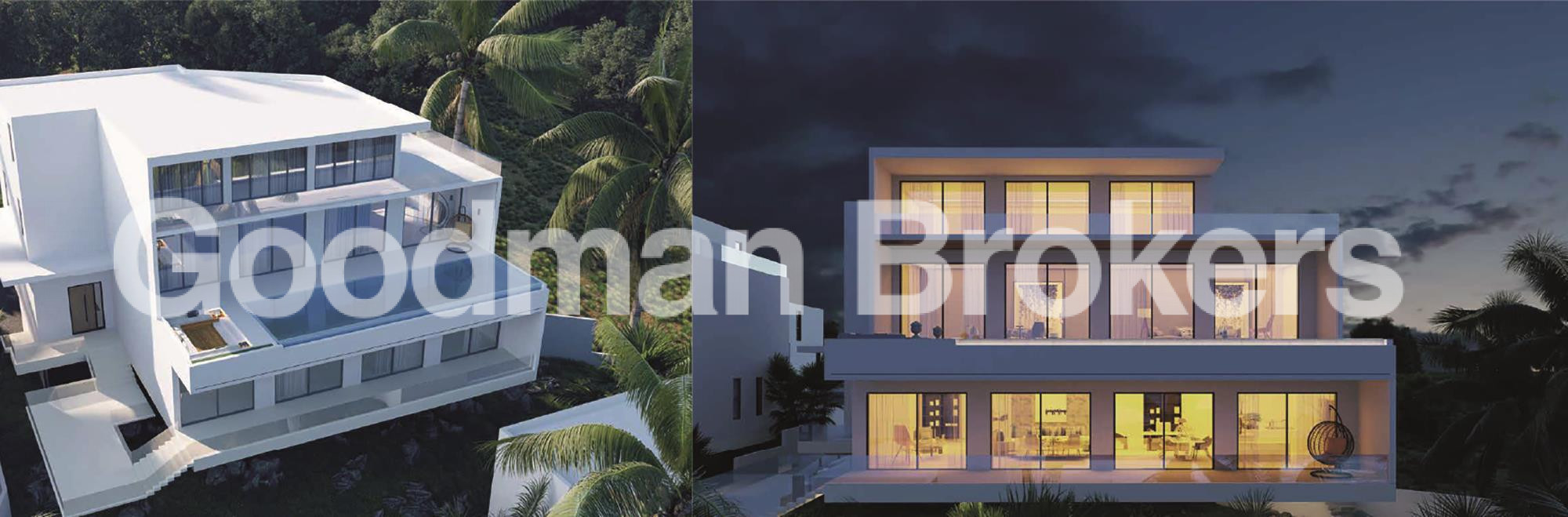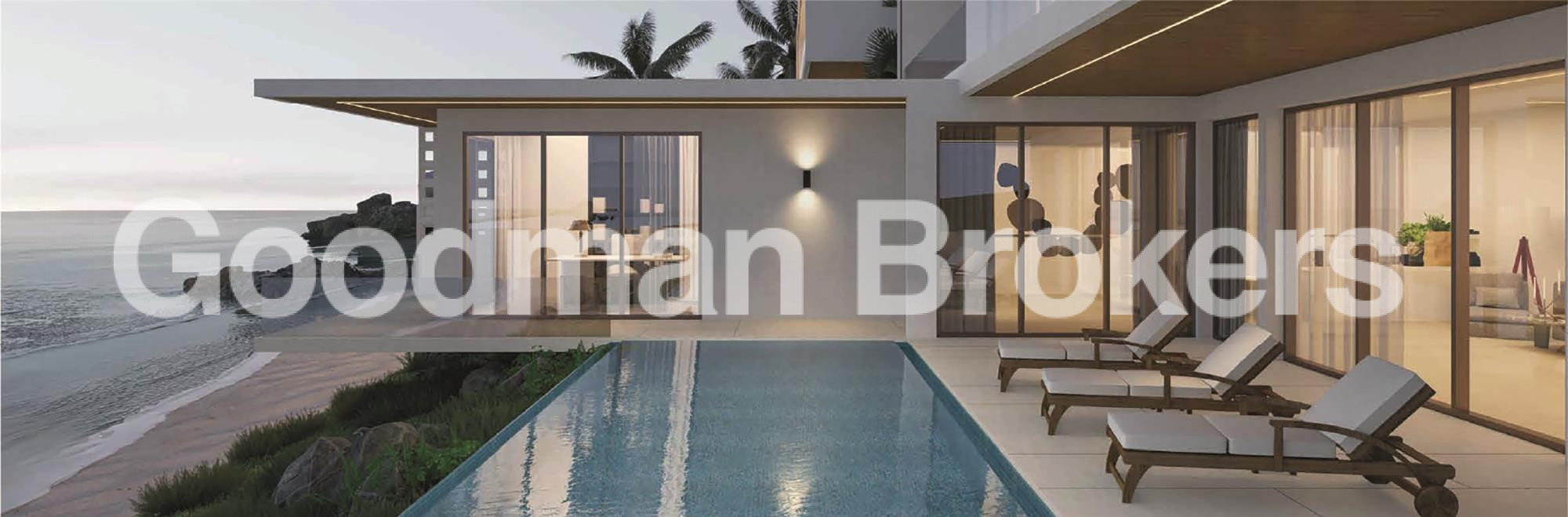 Each villa has been designed with expansive floor to ceiling glass, allowing natural light to flood the interiors while framing the ocean horizon. Built areas range from approximately 778 to 999 sq.m., with land plots extending up to just over 1050 sq.m. Configurations are offered with 6 or 7 bedrooms, each featuring ensuite bathrooms, private terraces, and an intelligent spatial flow between living and leisure spaces.