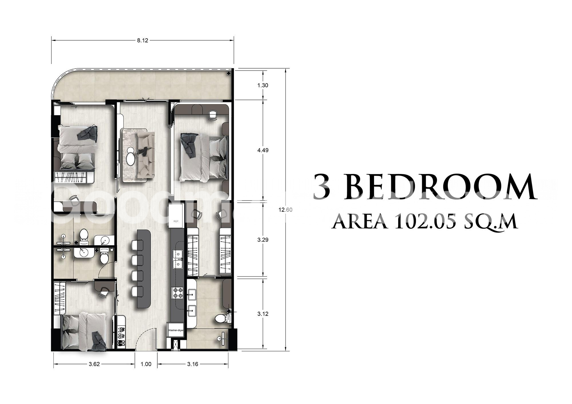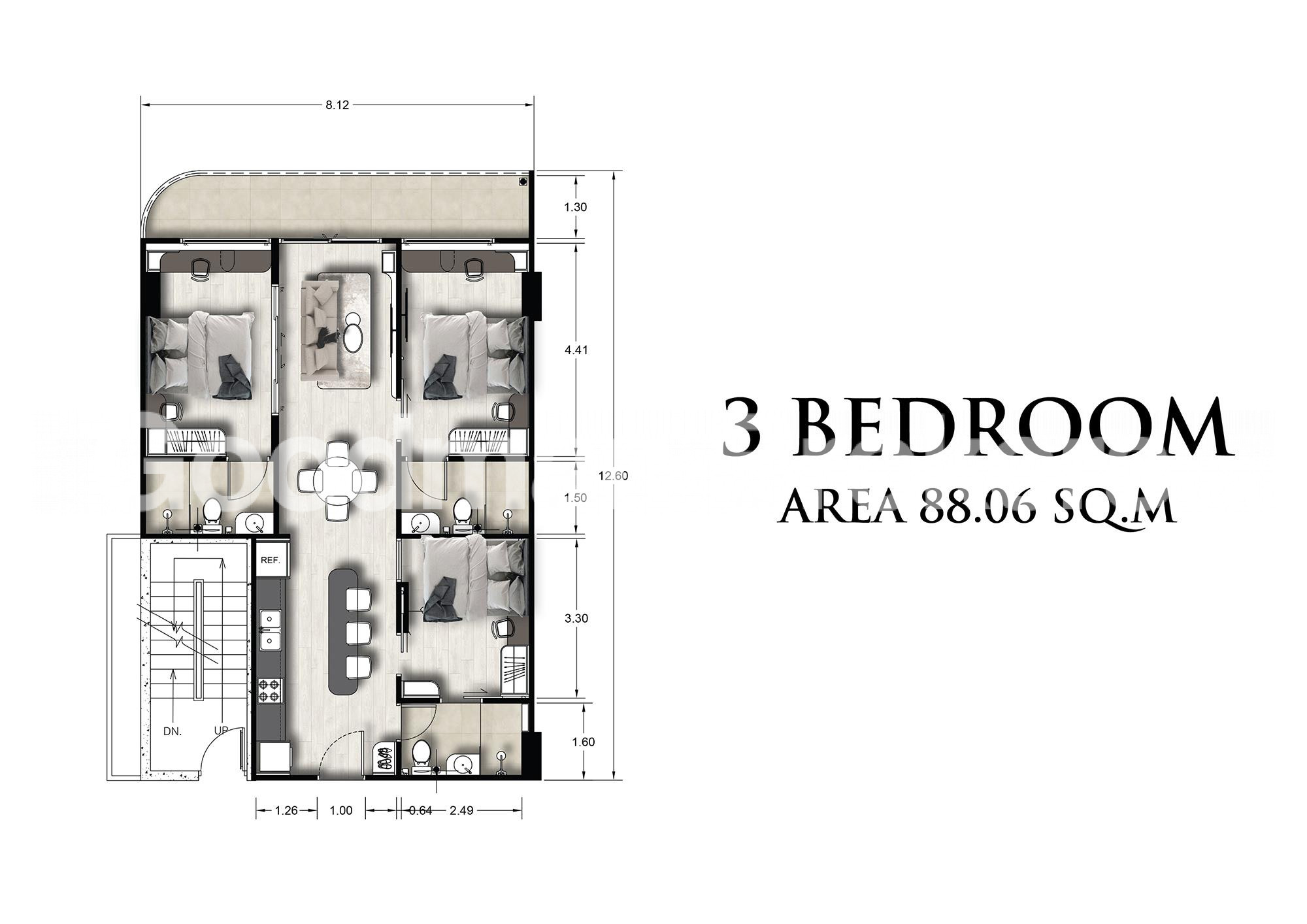 Ranging from 88.06 to 102.05 sq.m., each 3 bedroom unit features a well-balanced layout with bright open spaces and natural light throughout. The open plan living and dining area flows seamlessly onto a private balcony, inviting fresh ocean breezes and serene vistas.