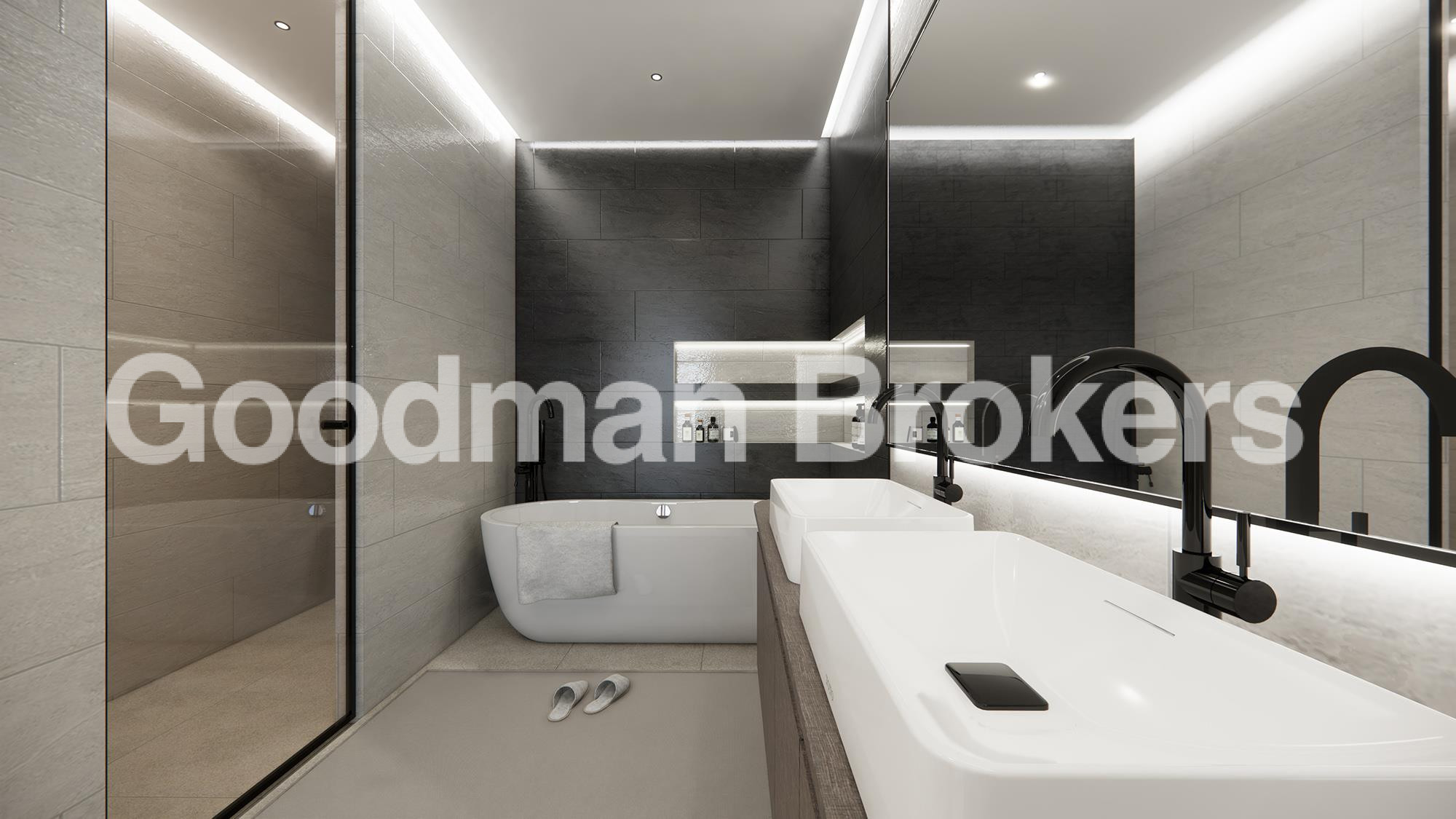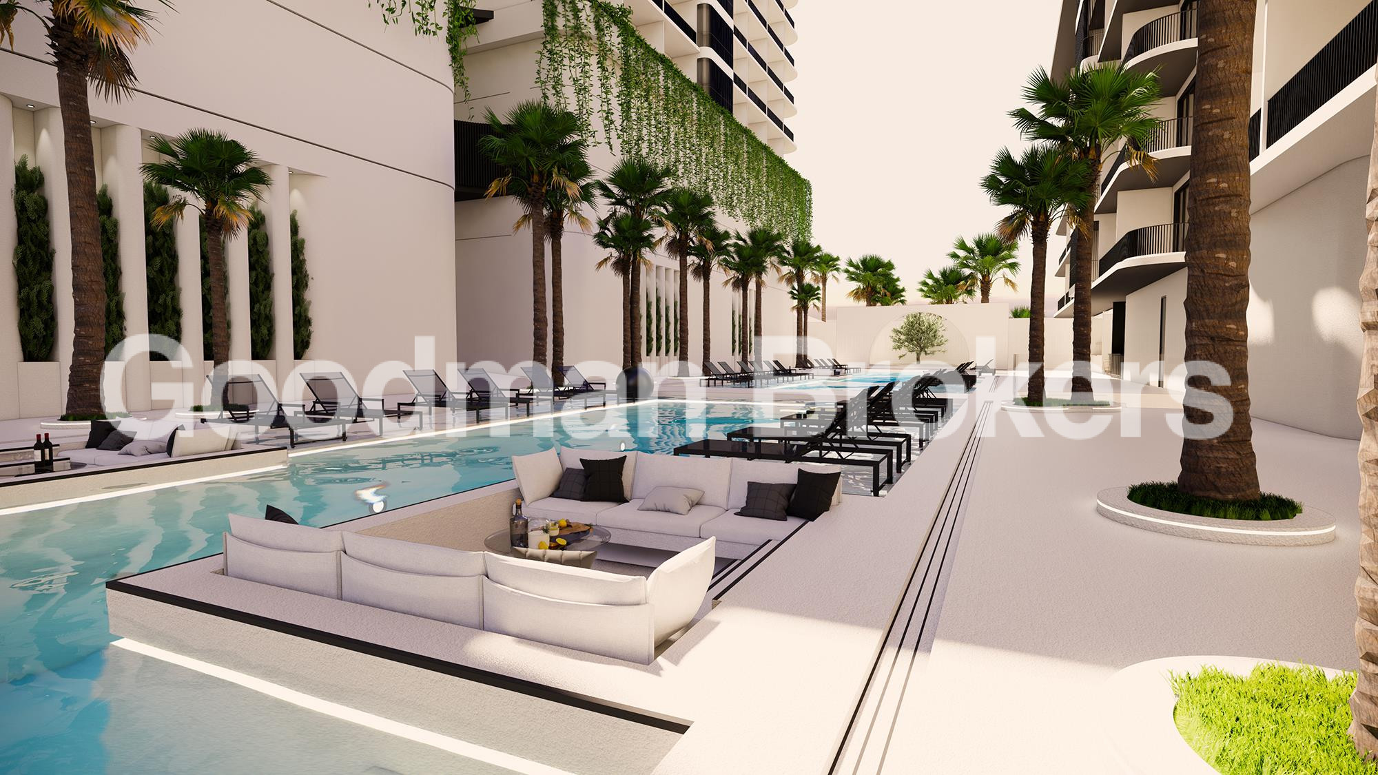 Residents benefit from an extensive range of resort style amenities including two lap pools, a rooftop infinity pool with ocean views, a wellness spa, sauna, steam rooms, yoga studio, fitness center, squash court, and golf simulator. Additional conveniences include a 24 hour market, cafe, coworking lounge, children’s play area, and secure underground parking.