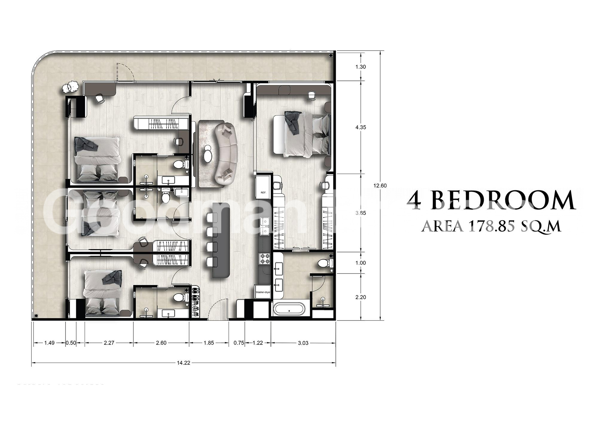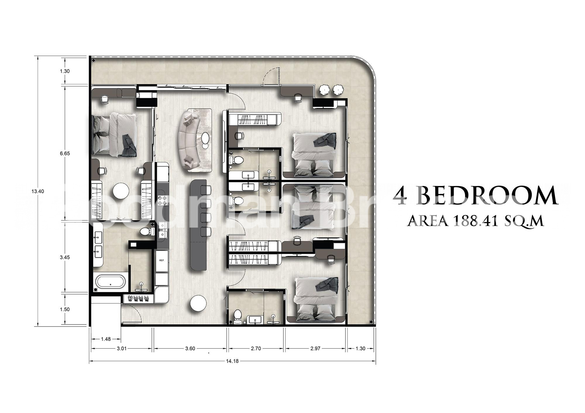 Ranging from 178.85 to 188.41 sq.m., each 4 bedroom unit is thoughtfully designed to provide generous living areas, high ceilings, and abundant natural light. The open plan living and dining space flows onto a large private balcony, ideal for entertaining or simply relaxing while enjoying the sea breeze and stunning sunsets.