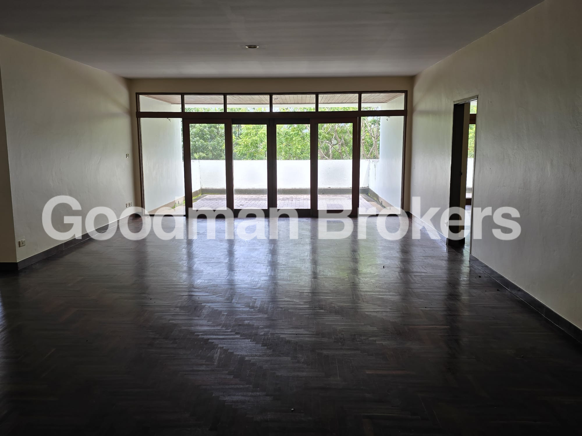 The penthouse features an open plan living and dining area with large windows that allow natural light to fill the space. The layout offers a solid foundation for a modern redesign, whether you envision a contemporary tropical retreat or a refined luxury residence.