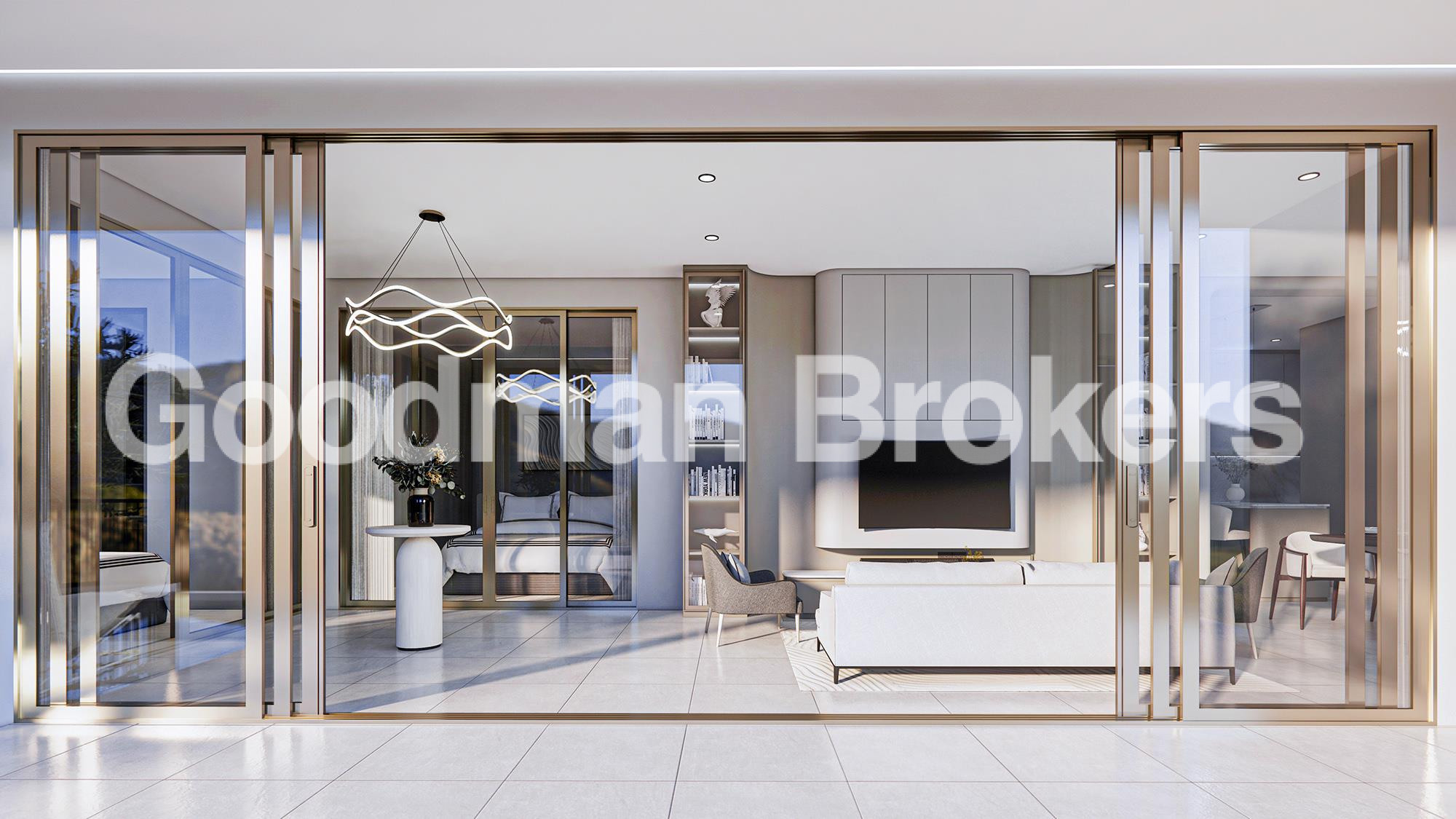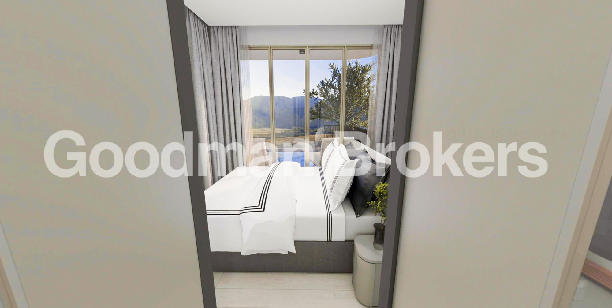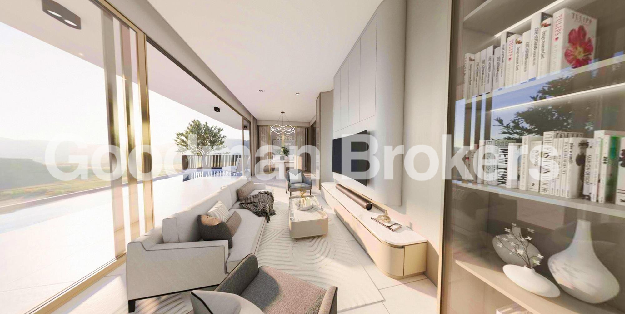 Two bedroom penthouse with a living room overlooking the mountains and a private pool.