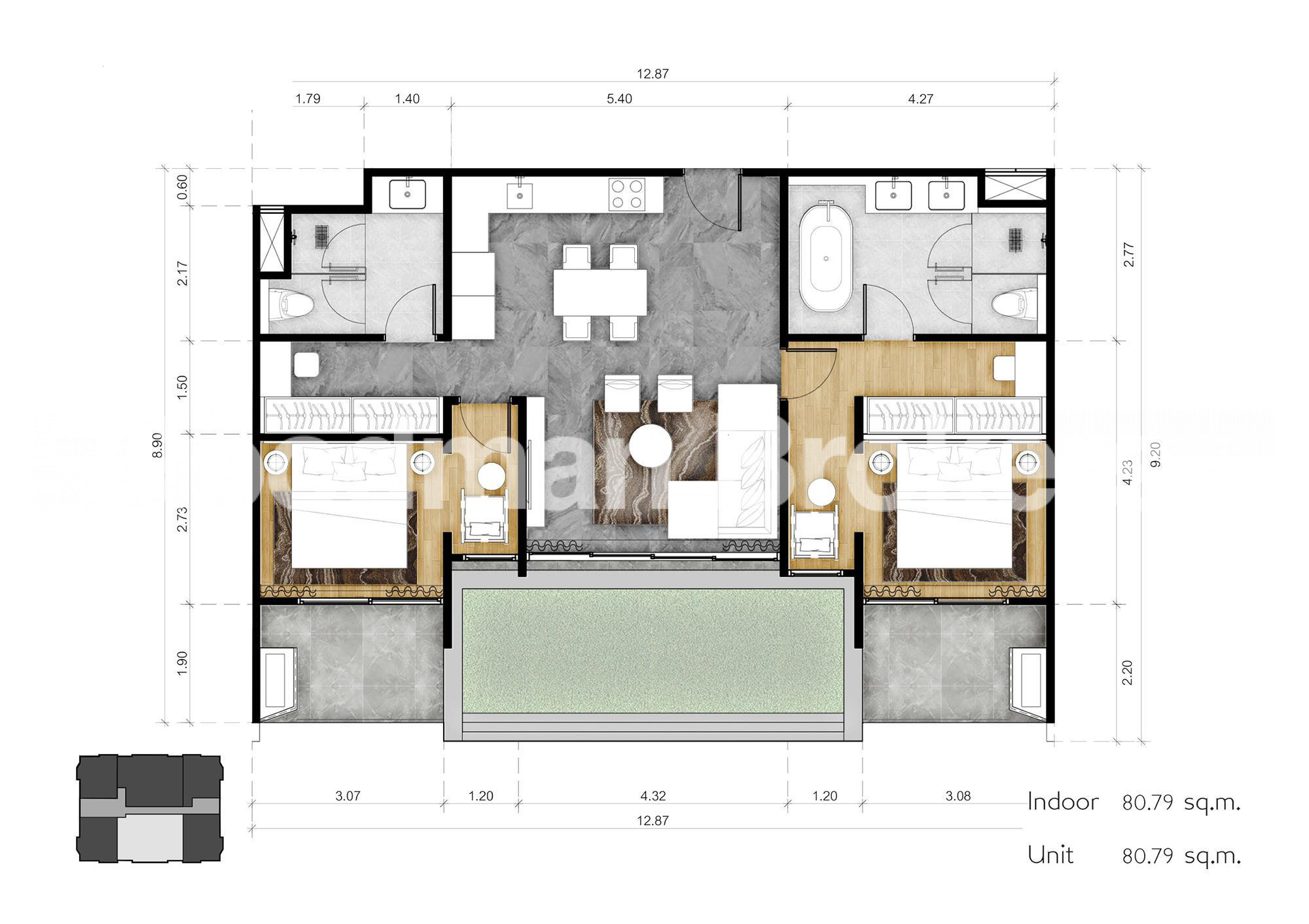 Construction is scheduled for completion in end December 2026. This modern 2 bedroom apartment represents a reliable opportunity to acquire a branded residence within one of the most sought after areas of Phuket, combining premium standards, strong demand, and long term asset stability.