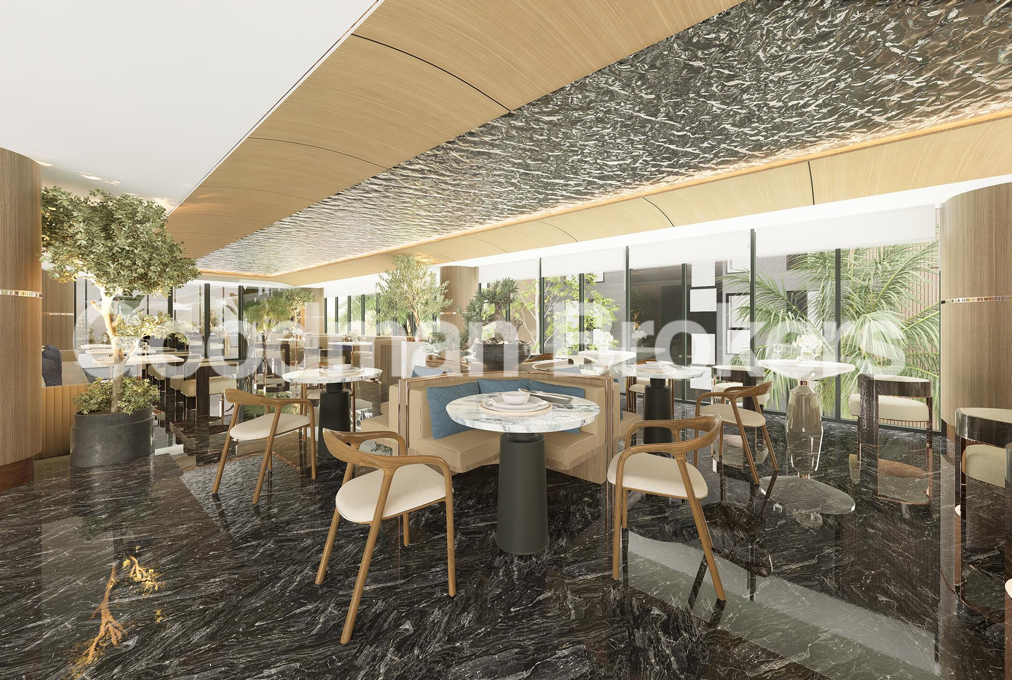 Each 2 bedroom apartment offers a spacious layout ranging from 110 to 112 sq.m. The design emphasizes efficiency, durability, and long term residential comfort. Buildings are 5 storeys and equipped with a complete fire safety system including fully automated prevention and suppression, addressable alarms, detectors, sprinklers, fire hose cabinets, extinguishers, and emergency lighting throughout all common areas and residential sections.