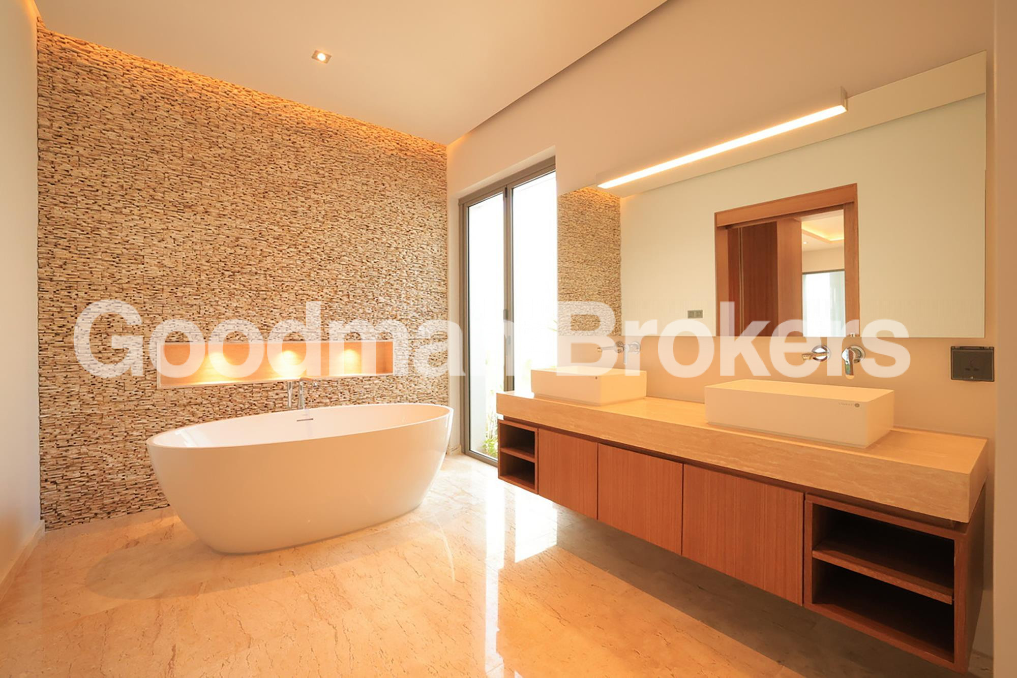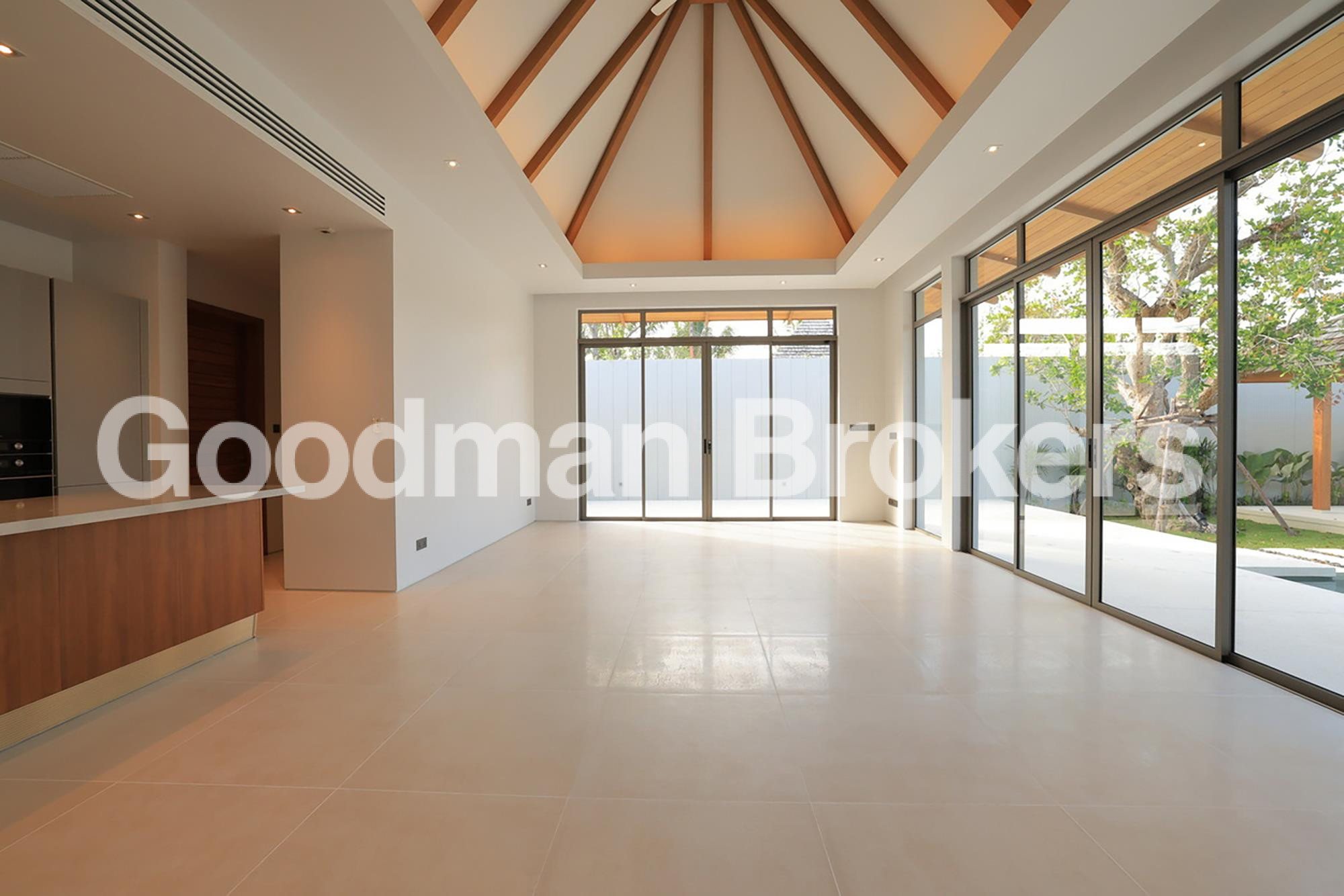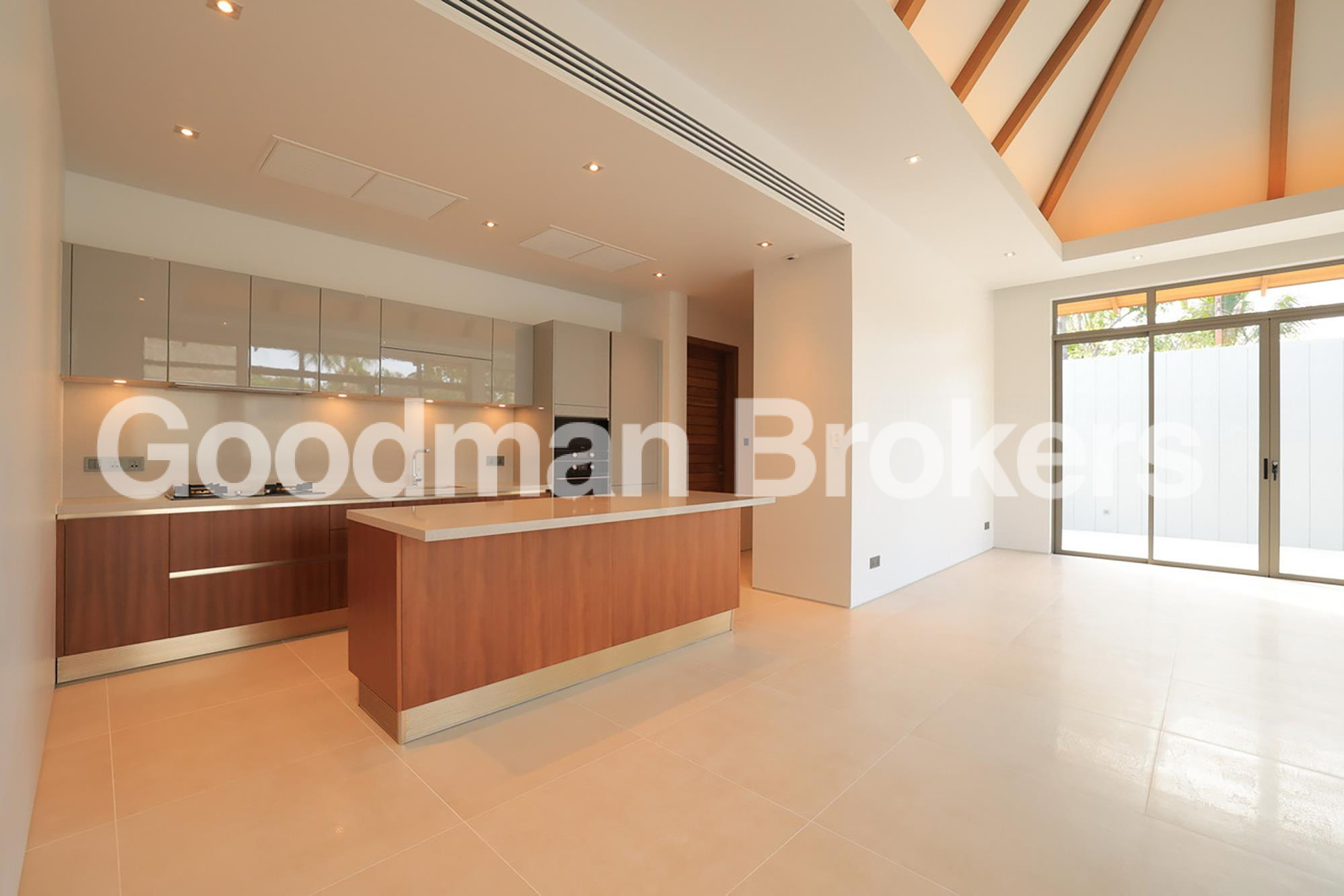 The property offers a built up area of 451 sq.m., on a land plot of 652 sq.m. All 4 bedrooms are equipped with ensuite bathrooms. The master suite includes a walk in closet, direct pool access and a spacious bathroom with separate bathtub and shower. The interior features an open plan living layout, high vaulted ceilings and a fully equipped Western kitchen with an island. Finishes and materials are selected for durability and efficient maintenance.