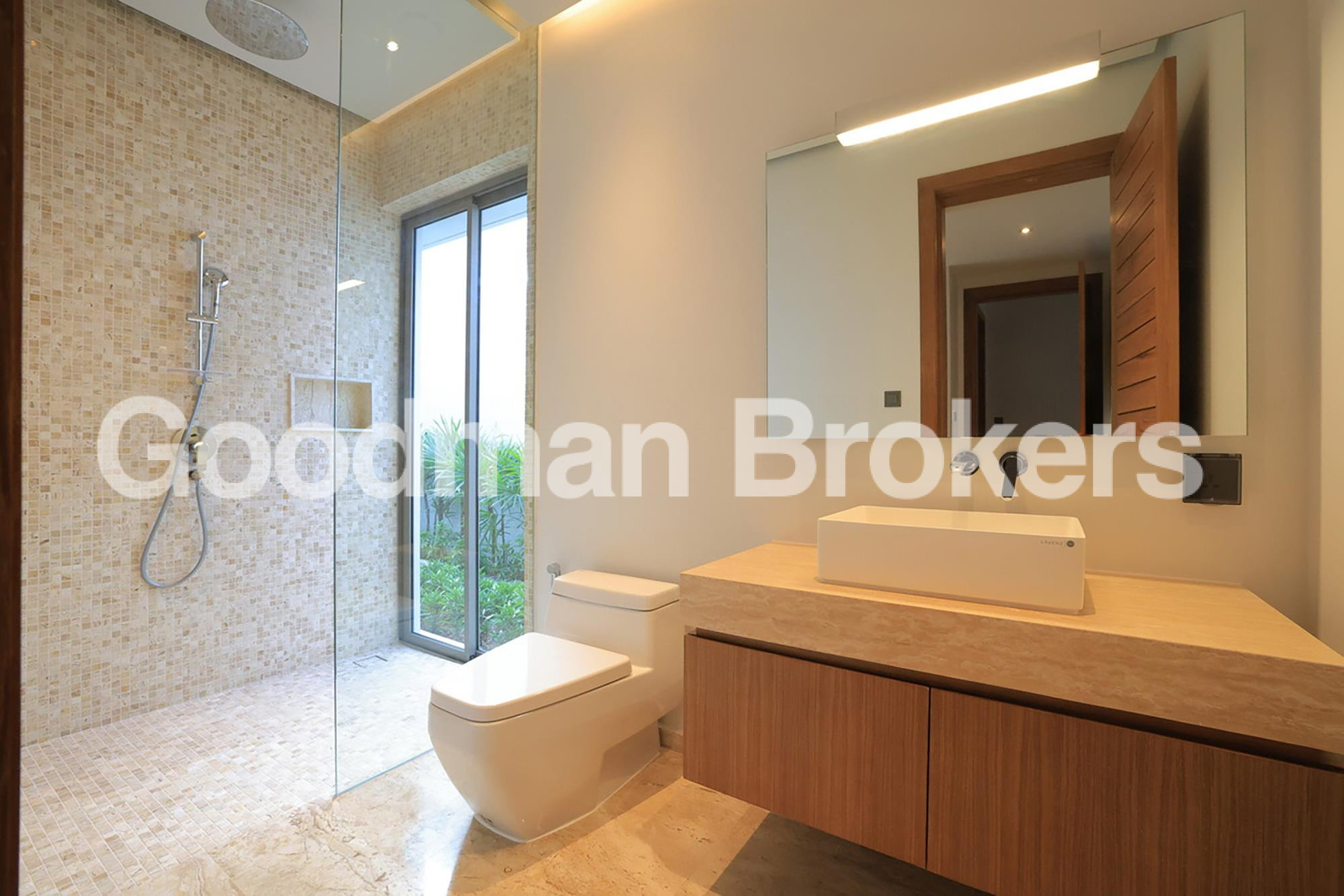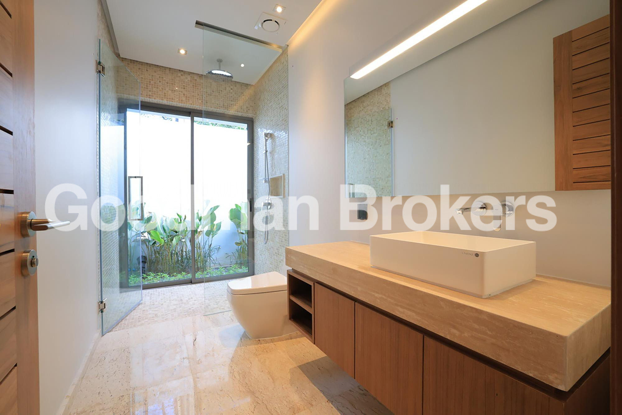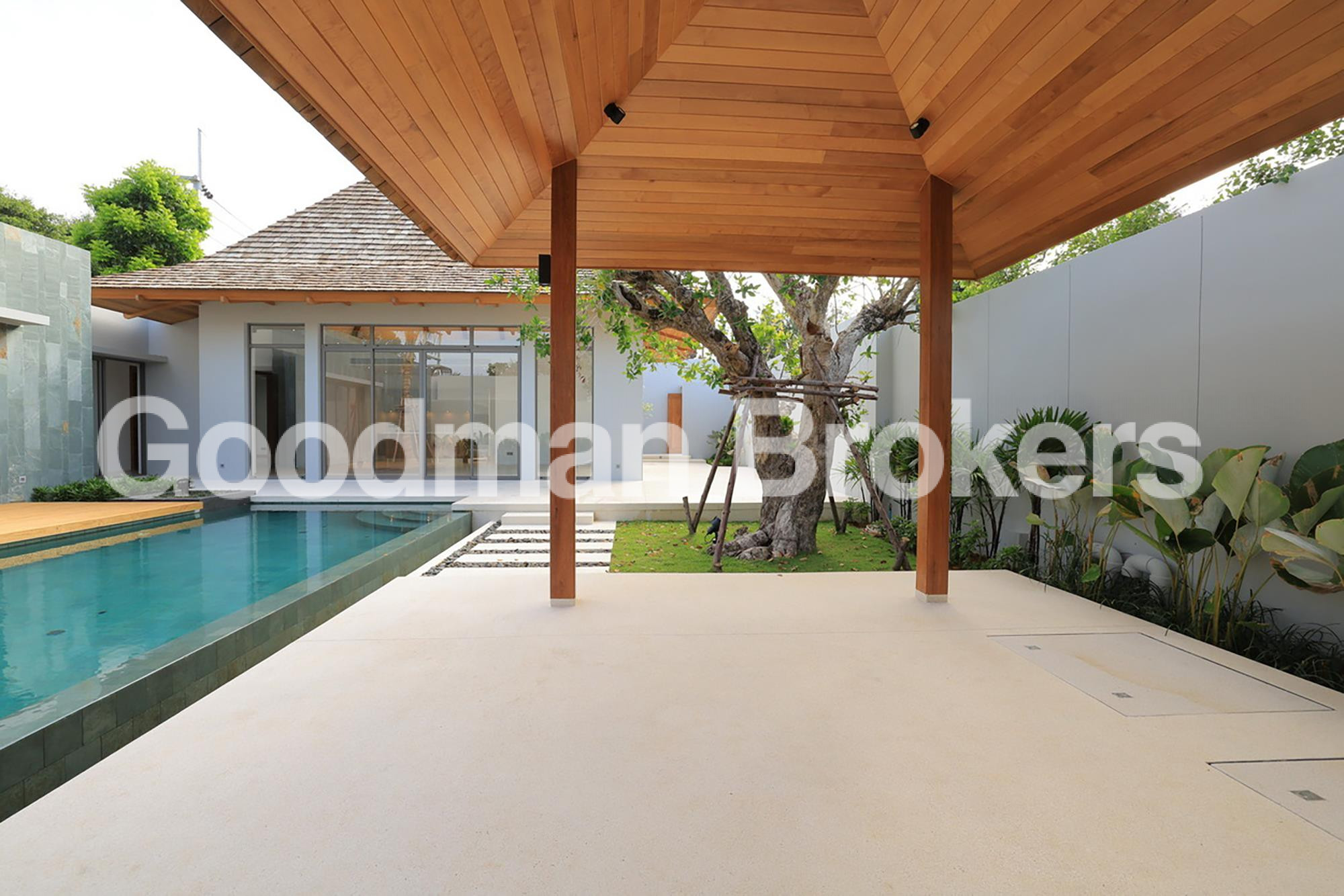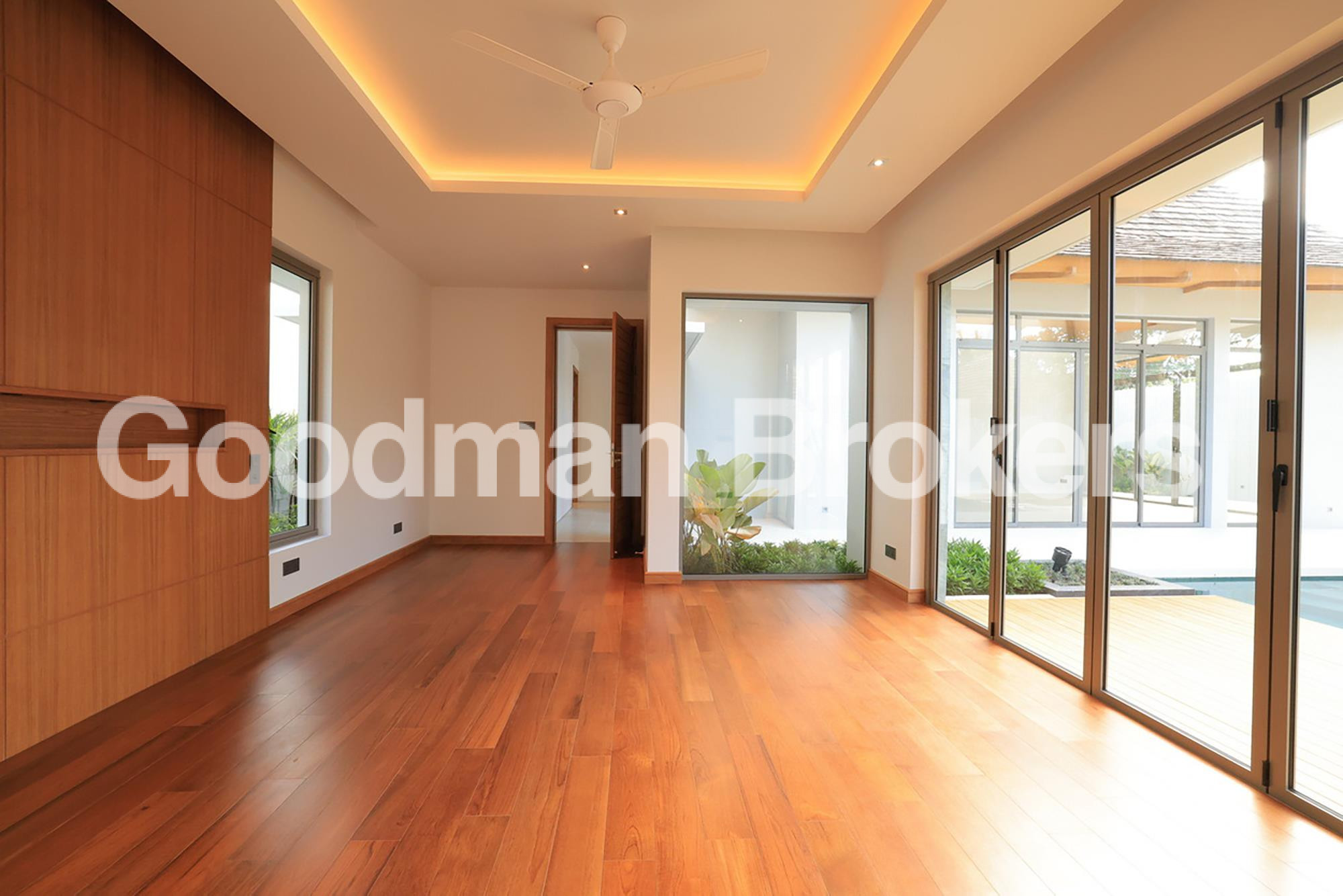 The property offers a built up area of 451 sq.m., on a land plot of 652 sq.m. All 4 bedrooms are equipped with ensuite bathrooms. The master suite includes a walk in closet, direct pool access and a spacious bathroom with separate bathtub and shower. The interior features an open plan living layout, high vaulted ceilings and a fully equipped Western kitchen with an island. Finishes and materials are selected for durability and efficient maintenance.
