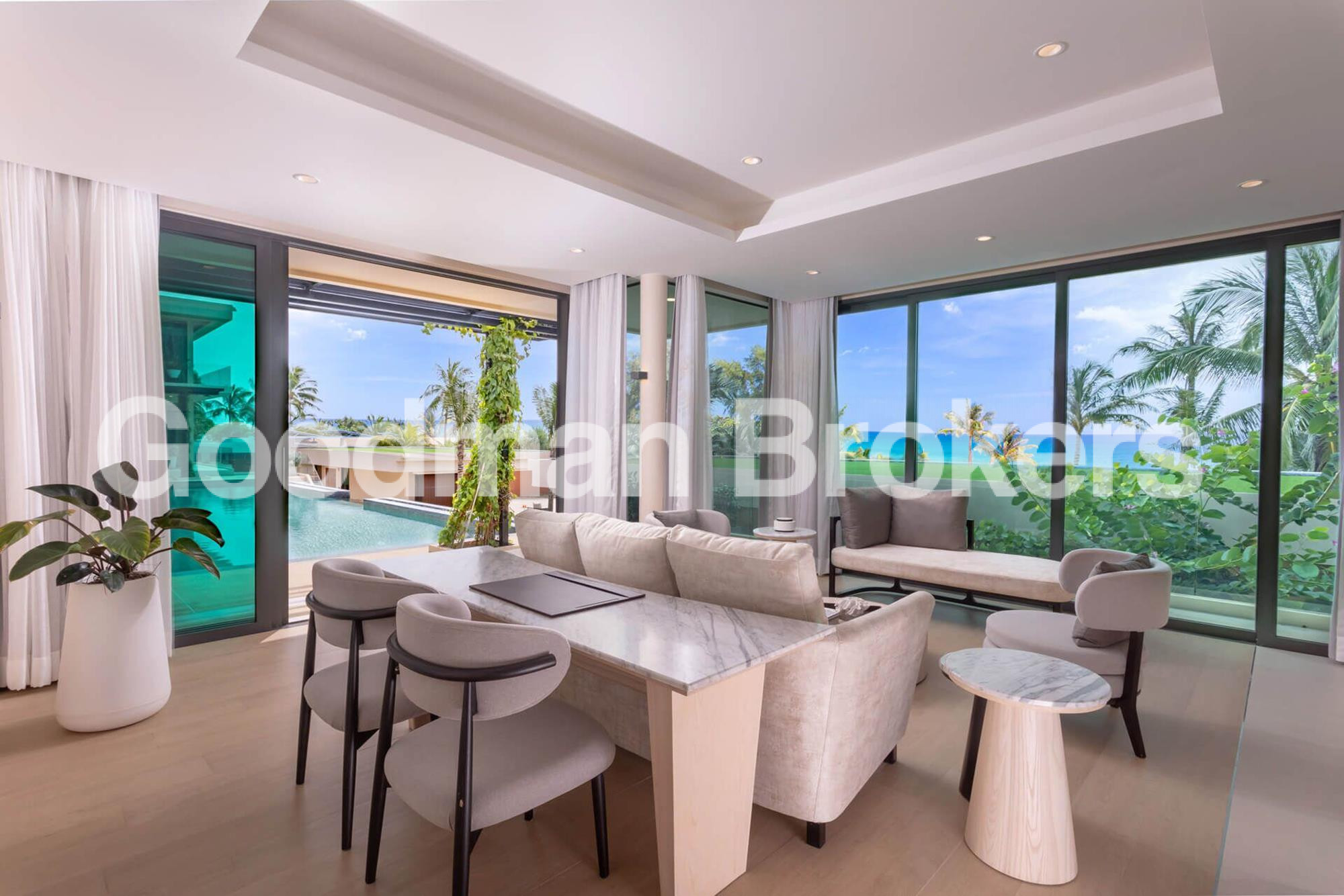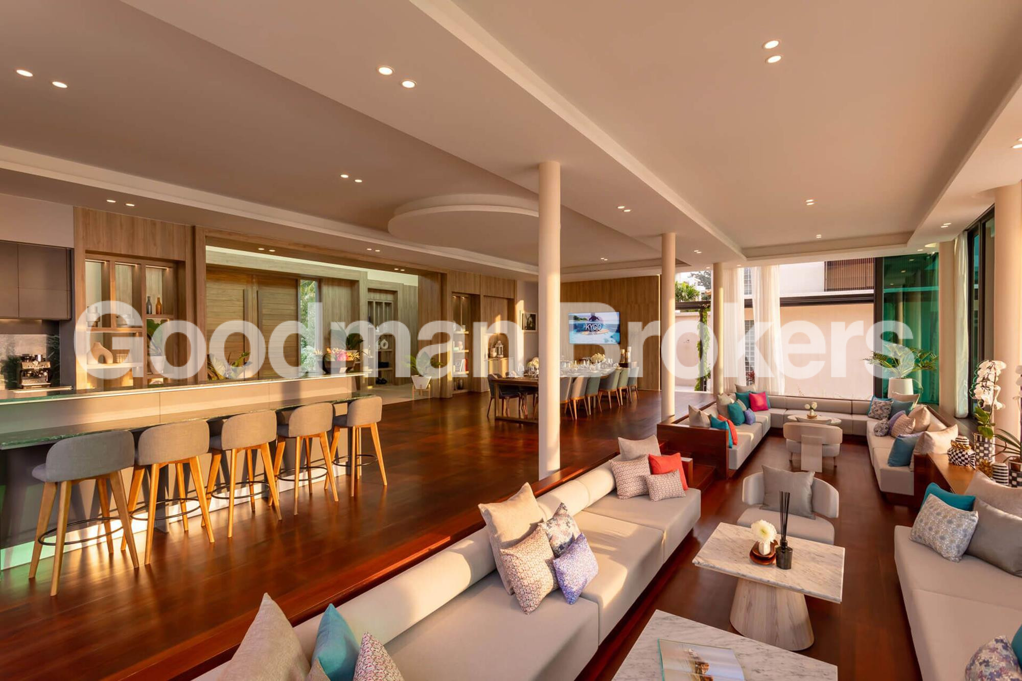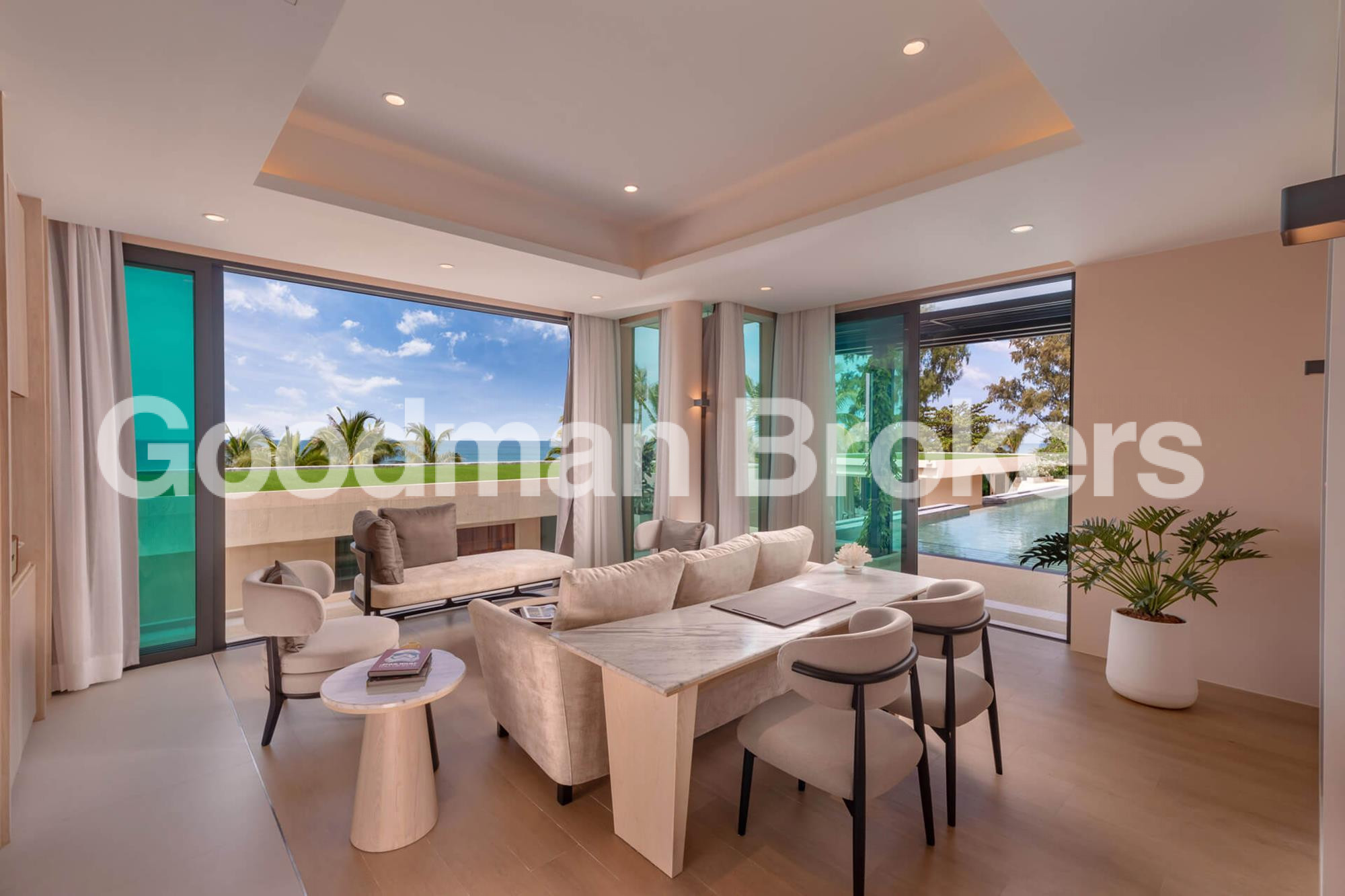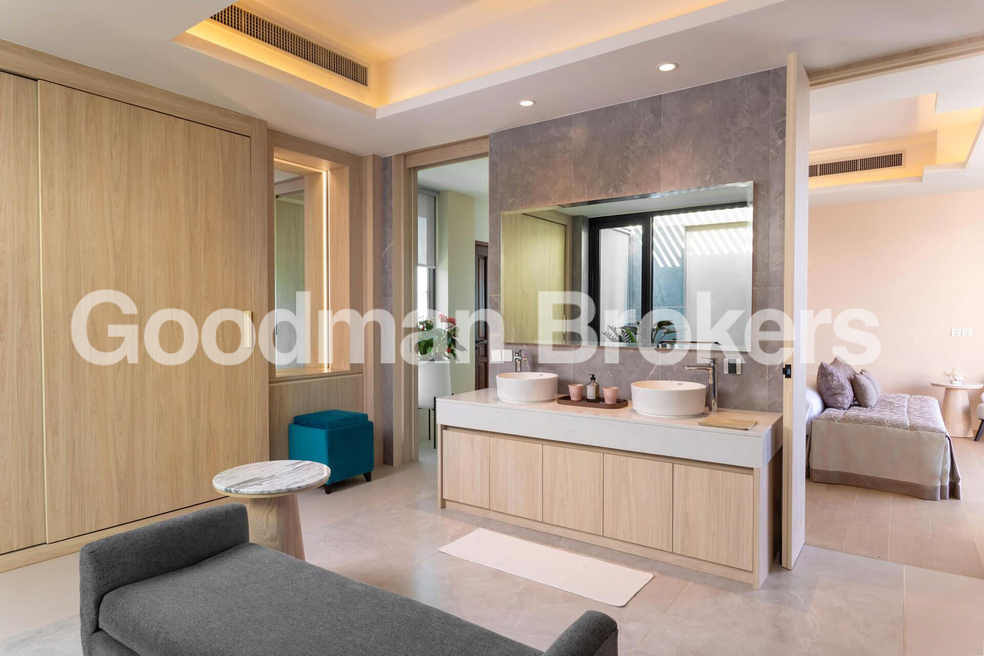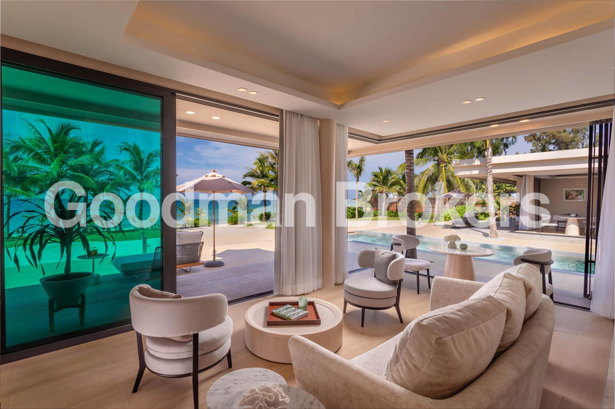 Each of the 6 bedrooms is furnished with a king size bed and an ensuite bathroom finished to luxury standards. Spacious lounge areas and workspaces enhance comfort and convenience. Two suites are positioned as standalone bungalows with terraces facing the pool and the ocean, providing elevated privacy and scenic vantage points.