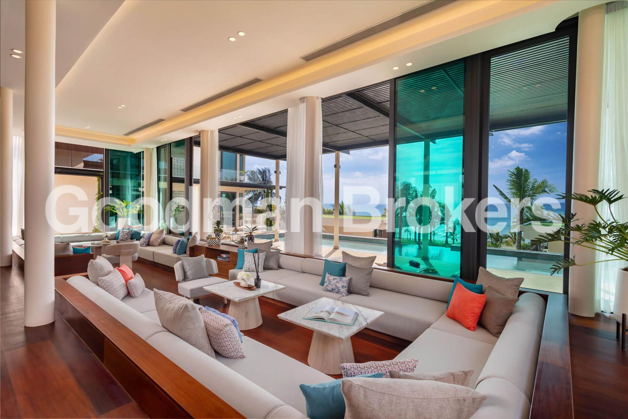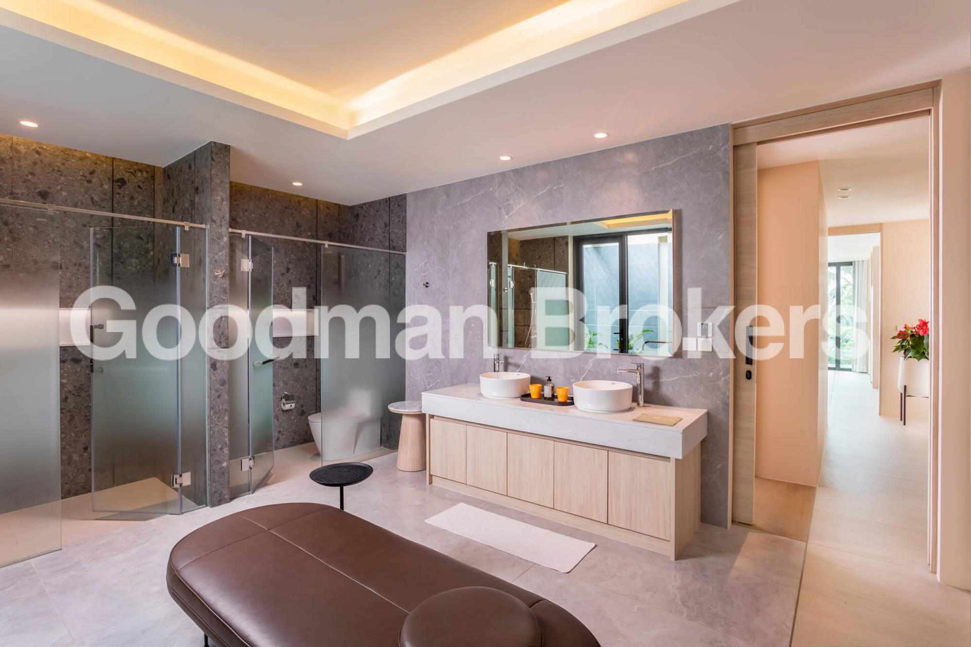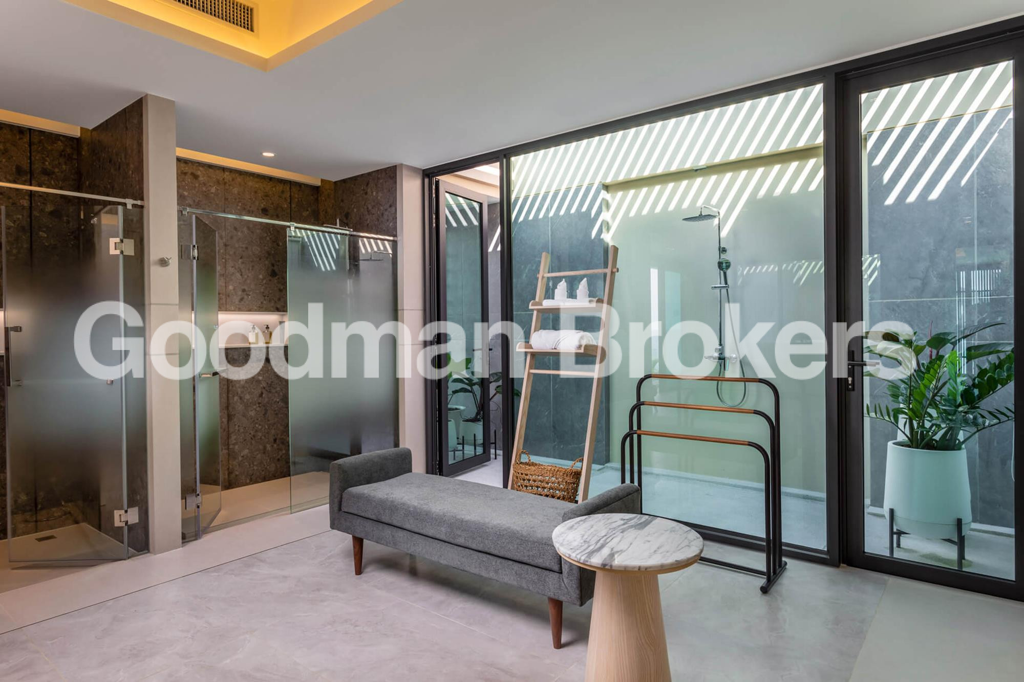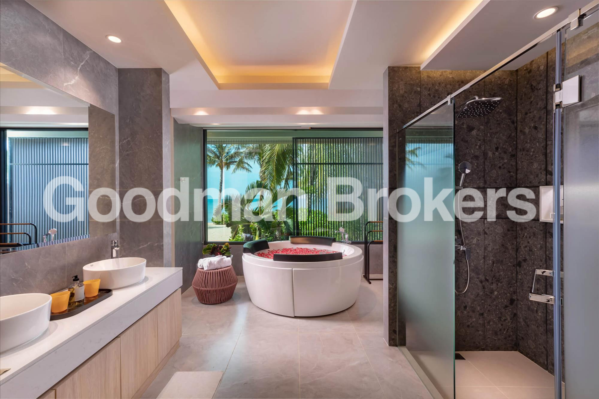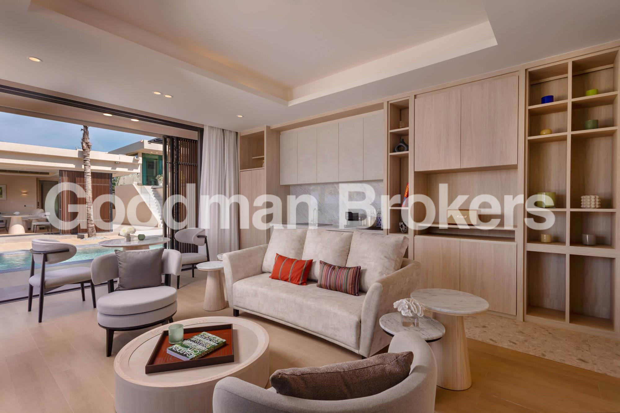 Each of the 6 bedrooms is furnished with a king size bed and an ensuite bathroom finished to luxury standards. Spacious lounge areas and workspaces enhance comfort and convenience. Two suites are positioned as standalone bungalows with terraces facing the pool and the ocean, providing elevated privacy and scenic vantage points.