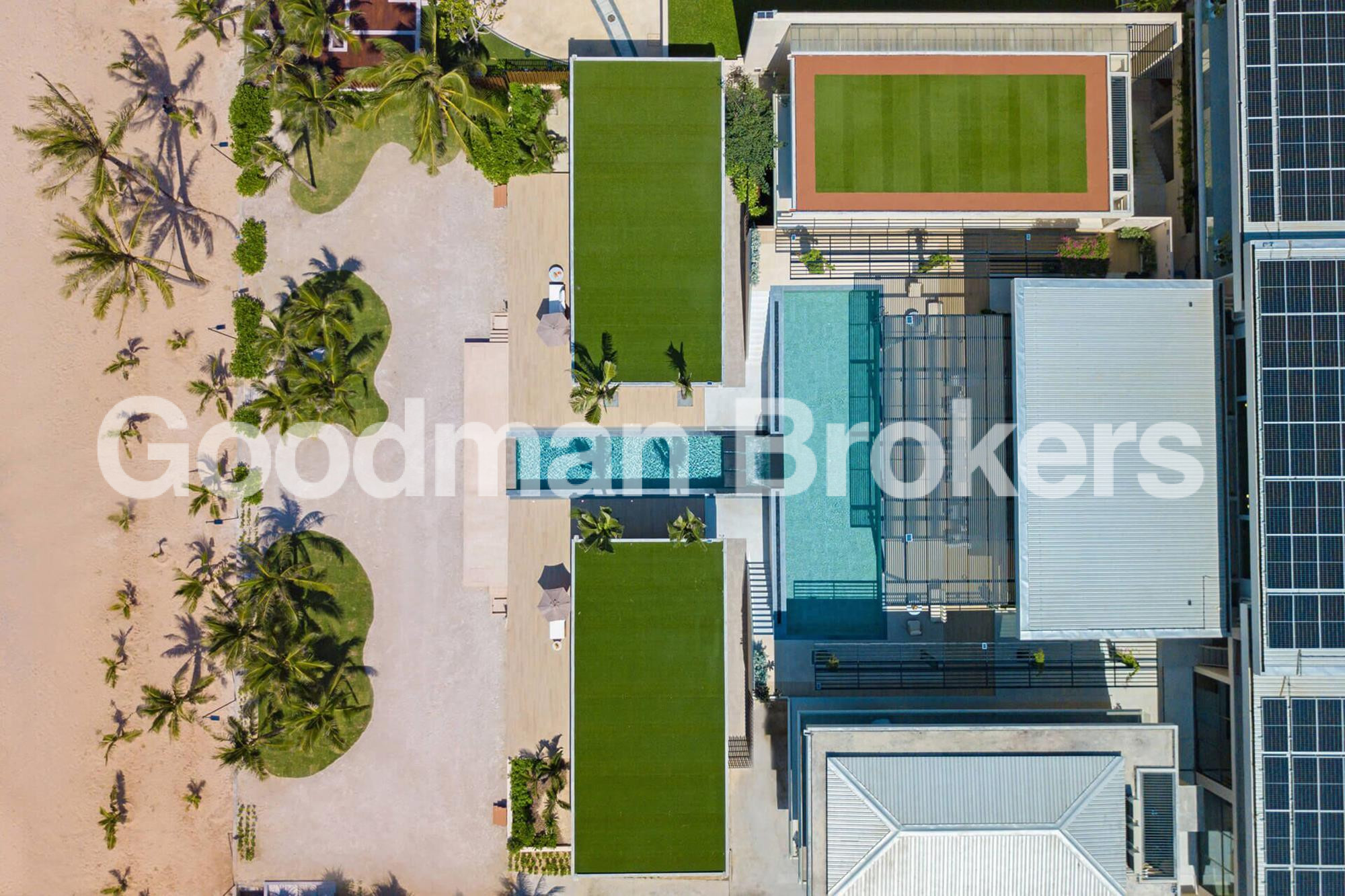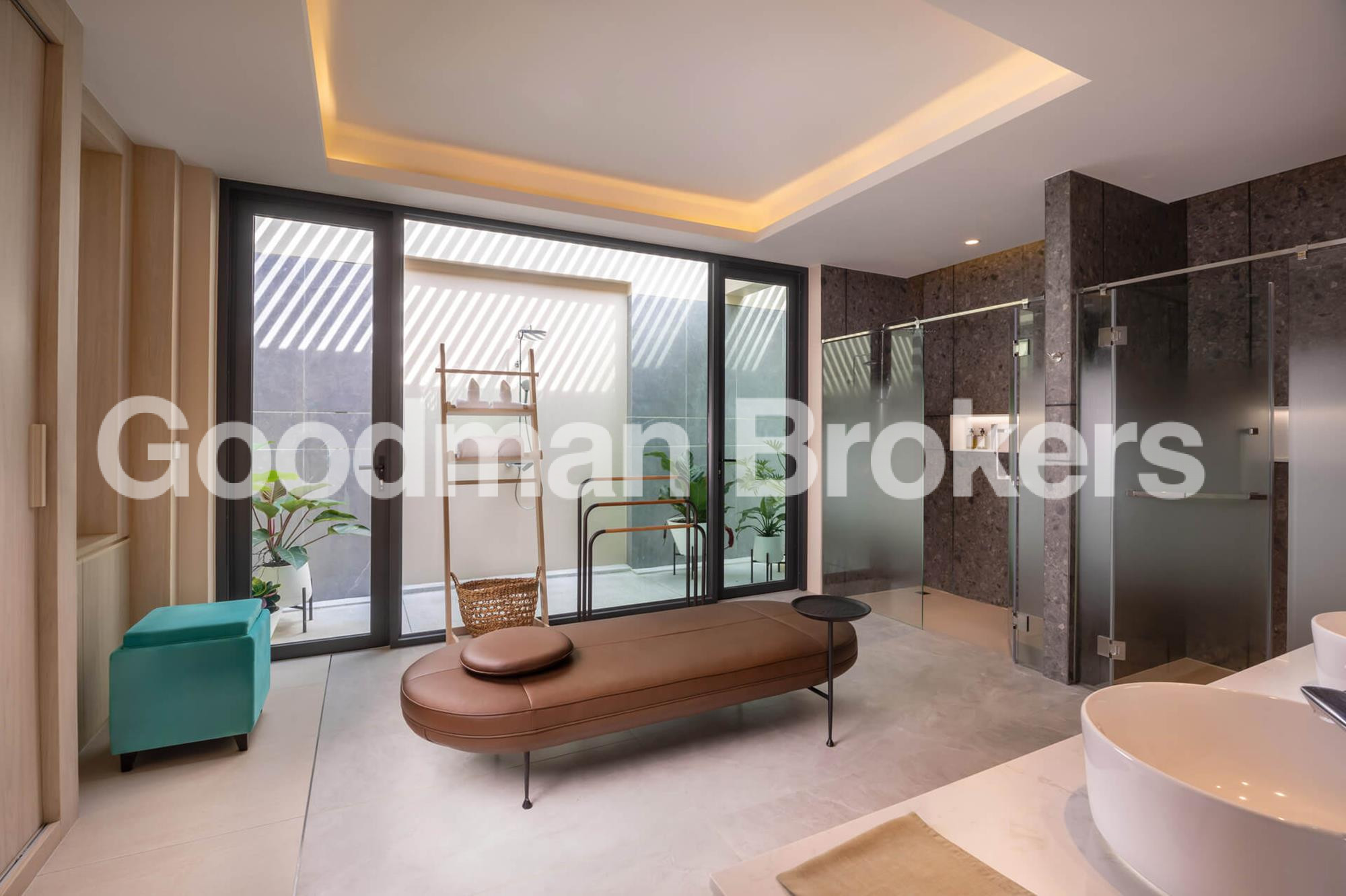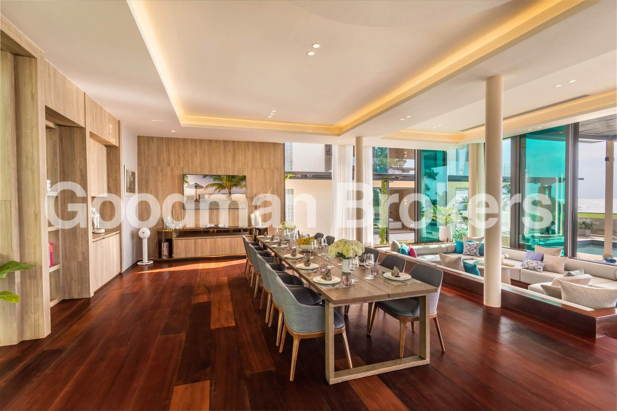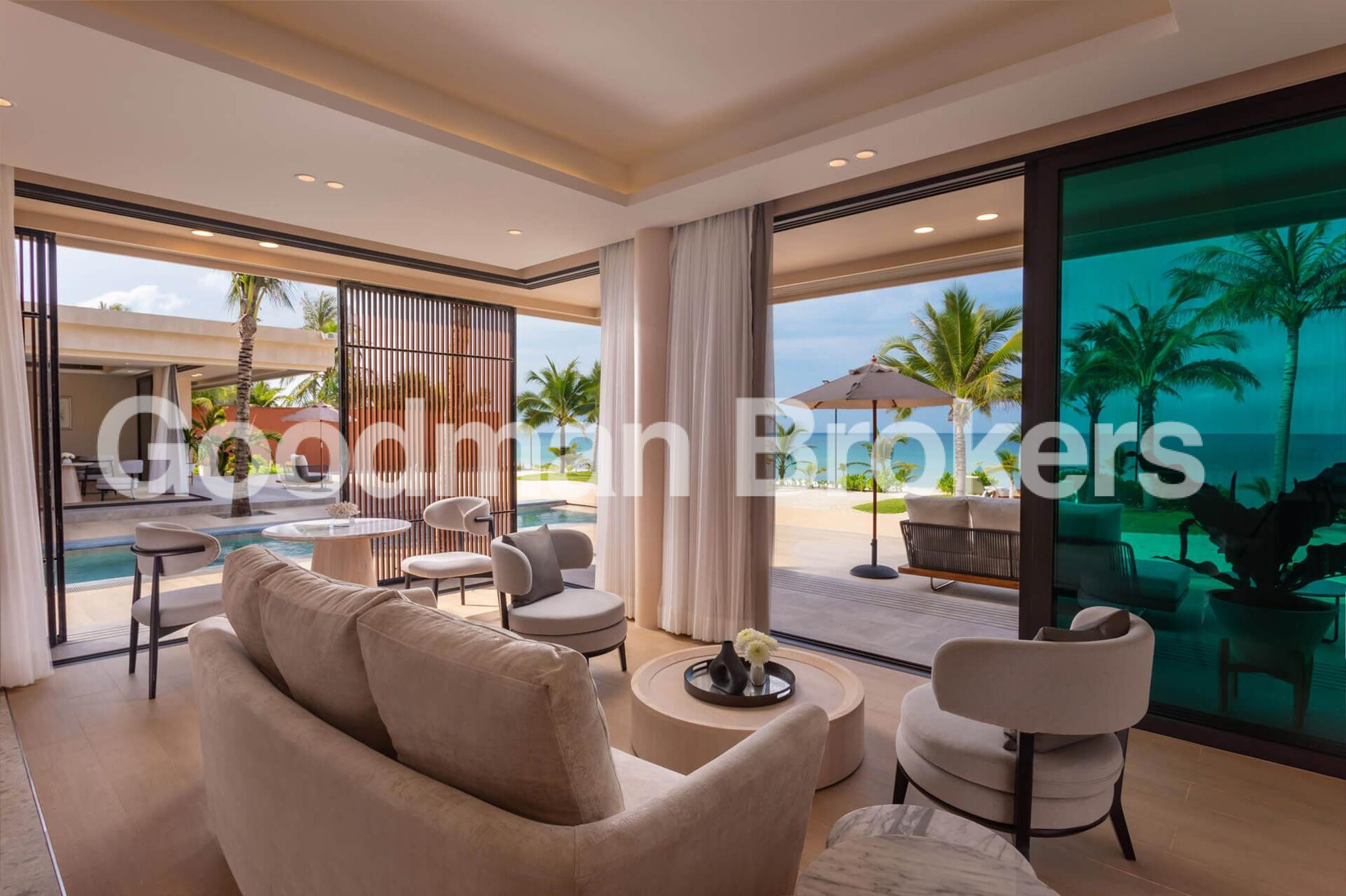 Each of the 6 bedrooms is furnished with a king size bed and an ensuite bathroom finished to luxury standards. Spacious lounge areas and workspaces enhance comfort and convenience. Two suites are positioned as standalone bungalows with terraces facing the pool and the ocean, providing elevated privacy and scenic vantage points.