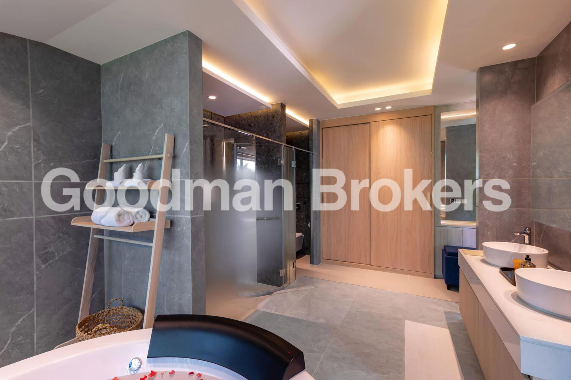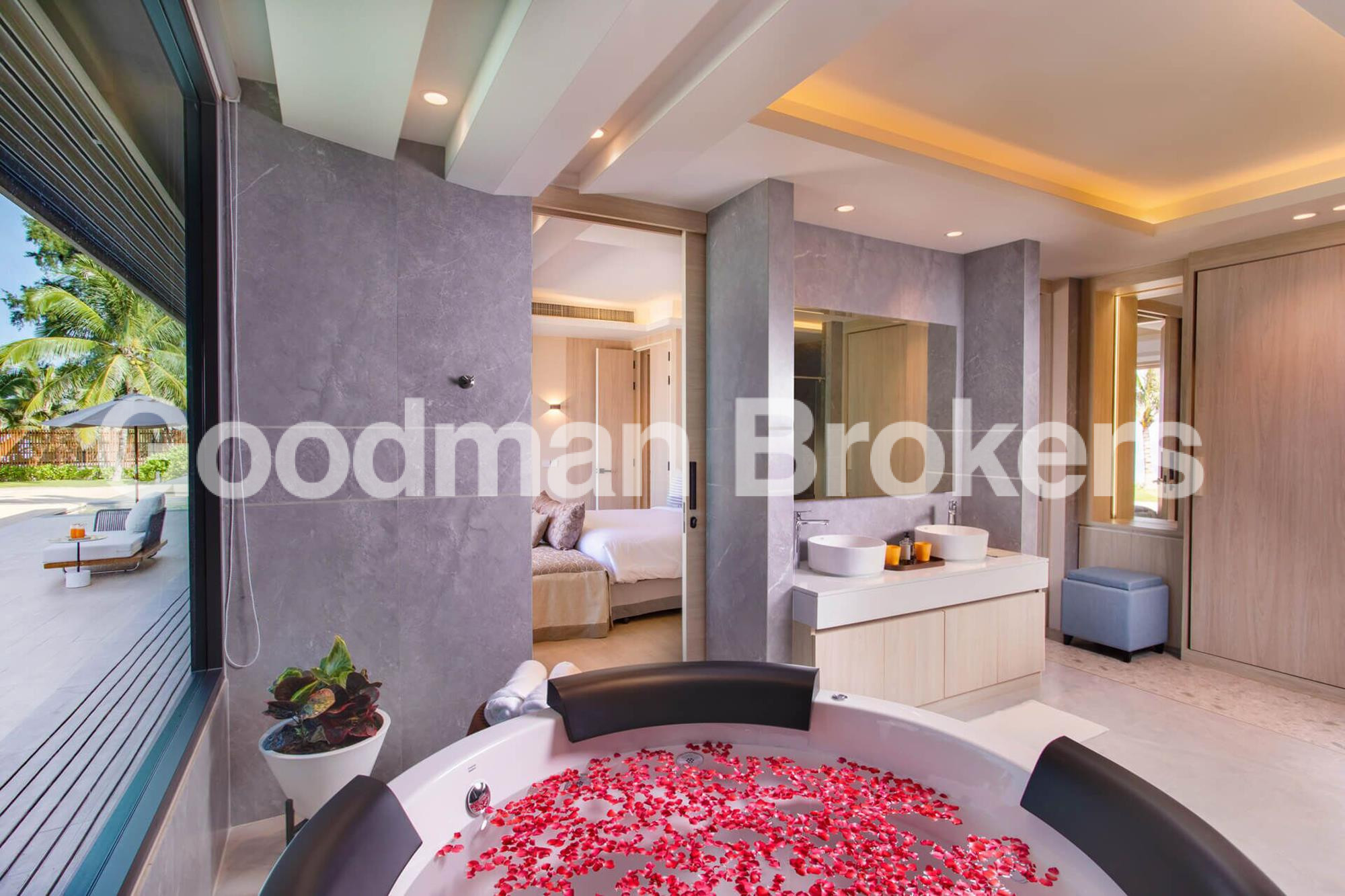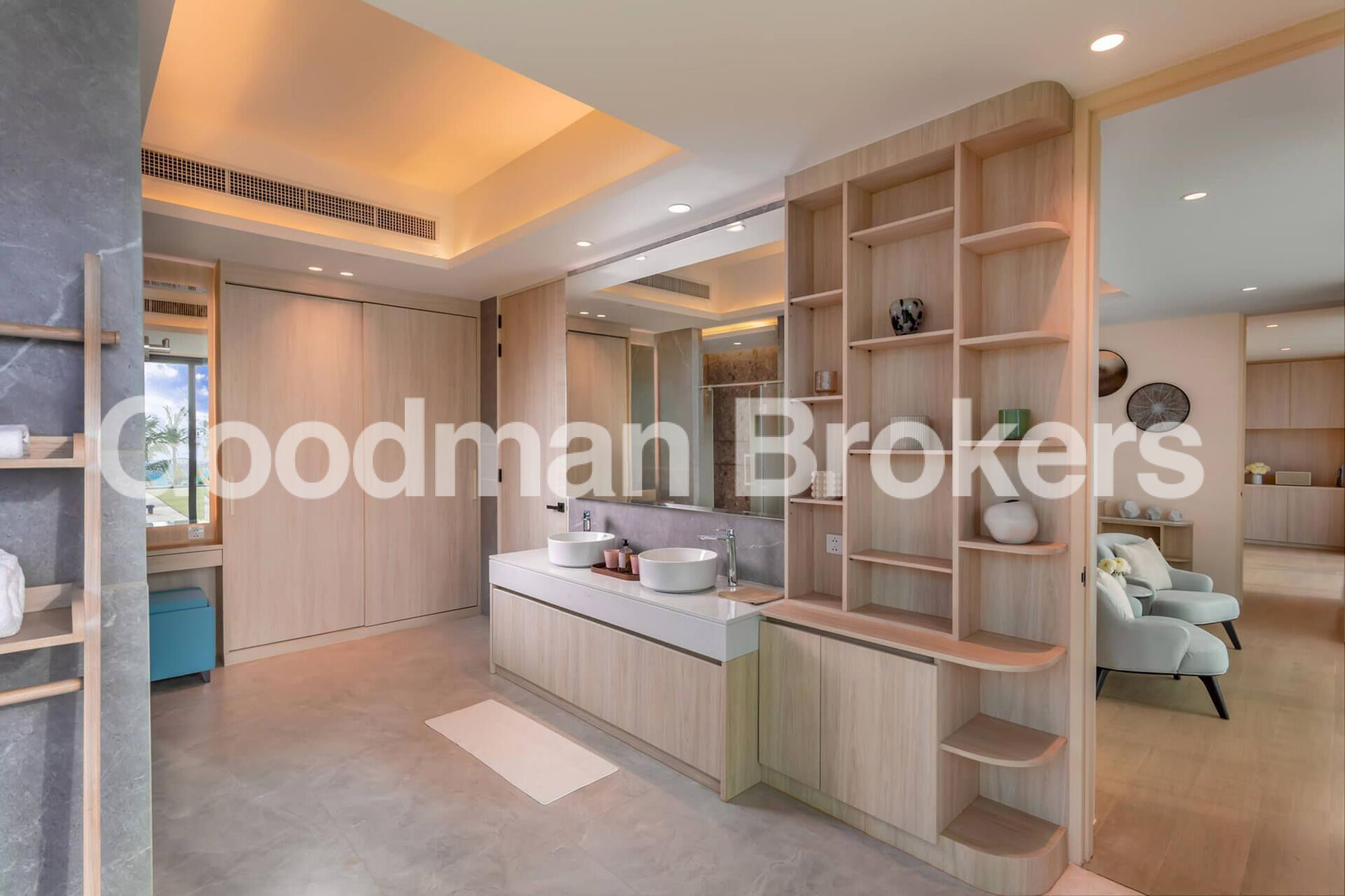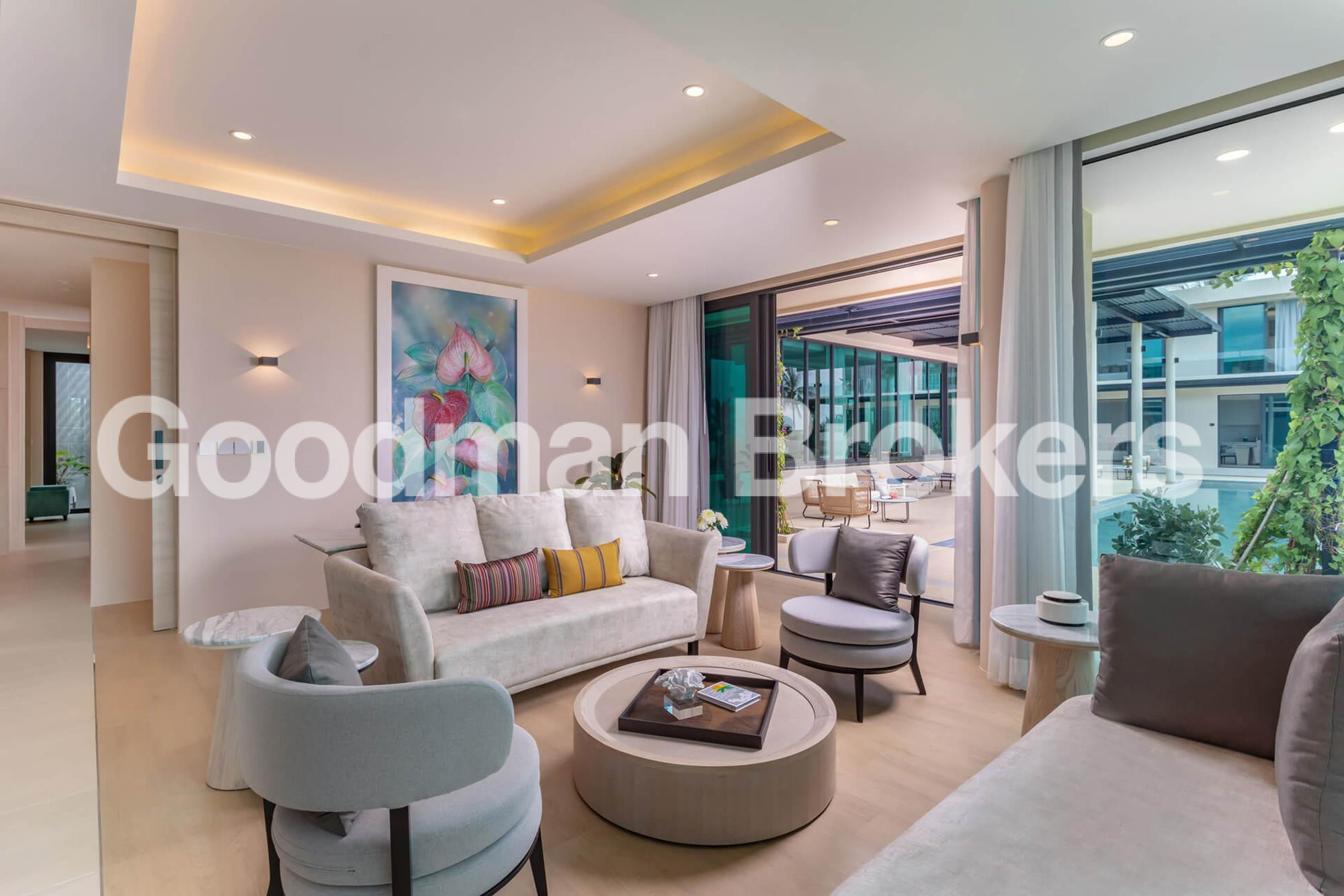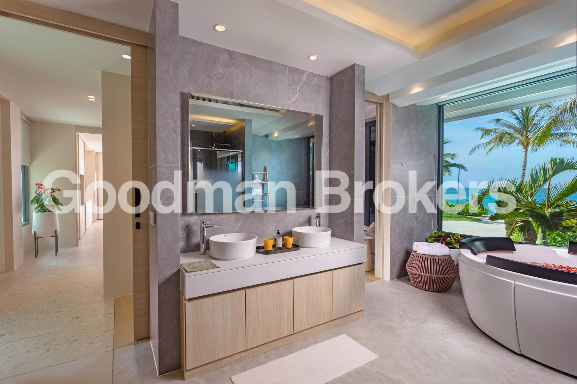 Each of the 6 bedrooms is furnished with a king size bed and an ensuite bathroom finished to luxury standards. Spacious lounge areas and workspaces enhance comfort and convenience. Two suites are positioned as standalone bungalows with terraces facing the pool and the ocean, providing elevated privacy and scenic vantage points.