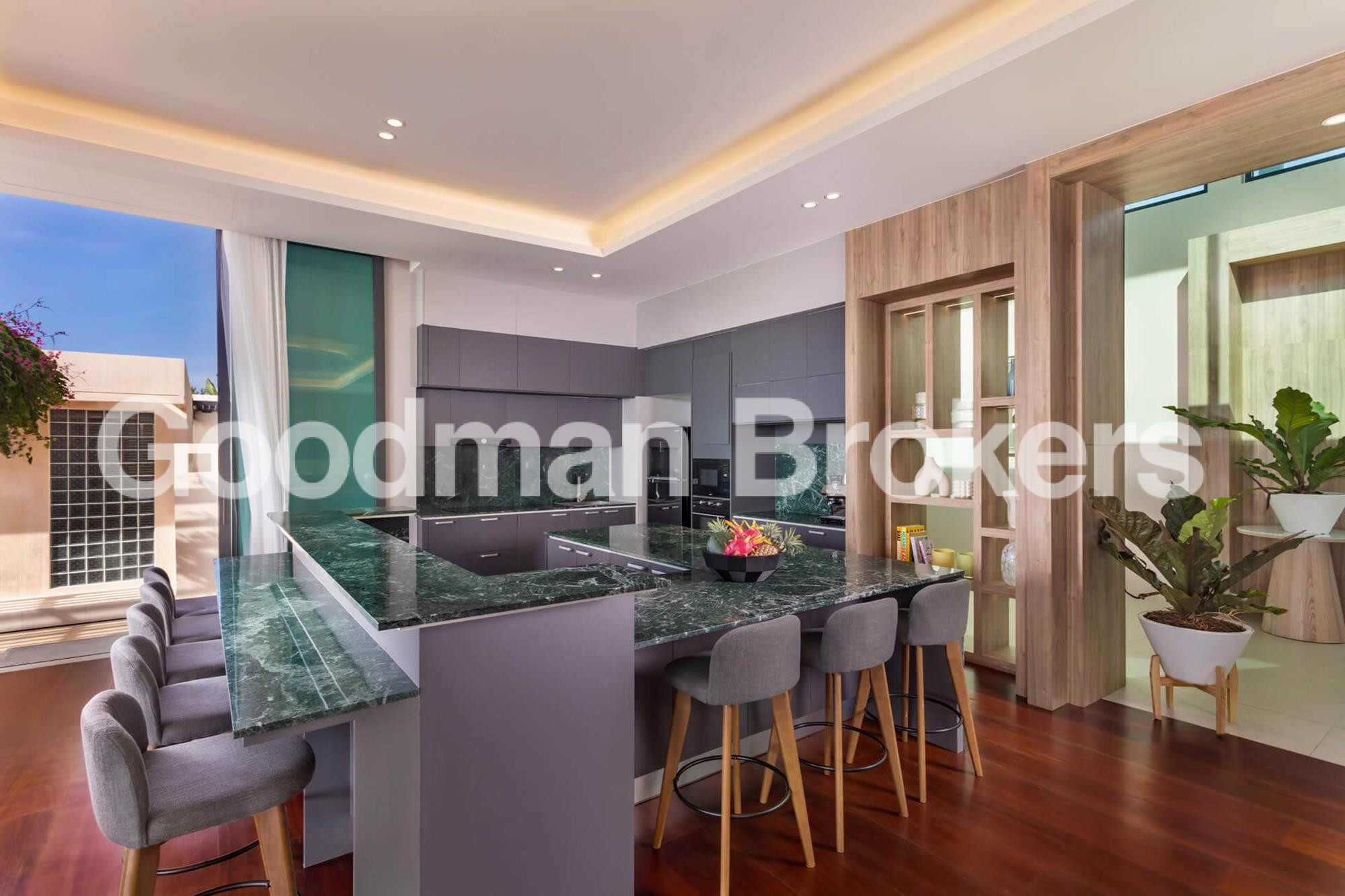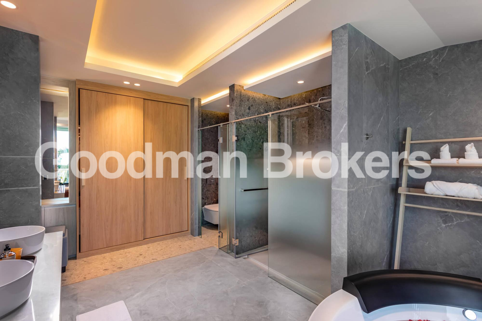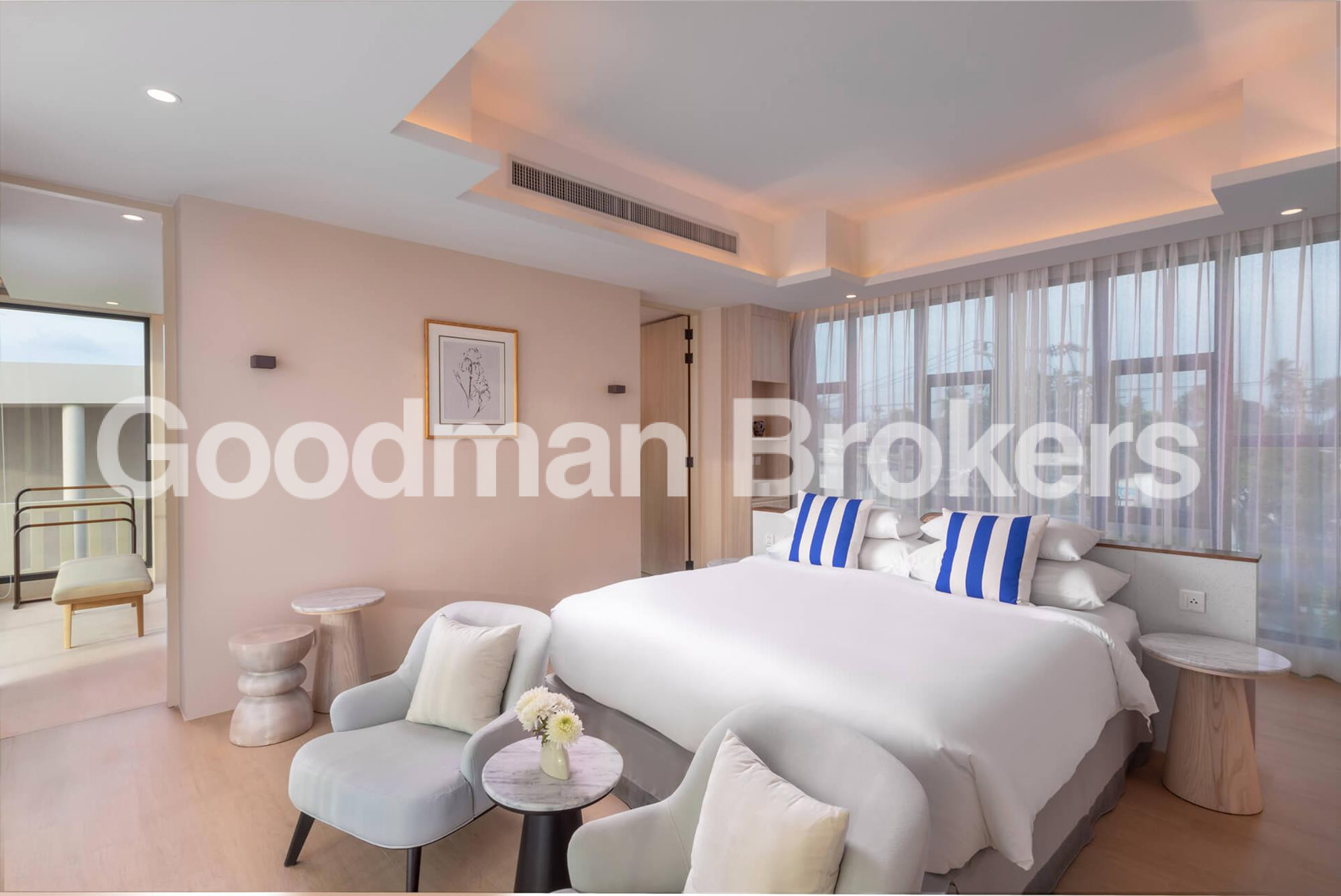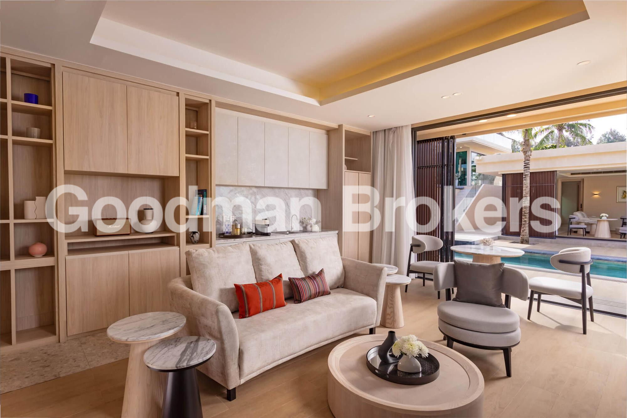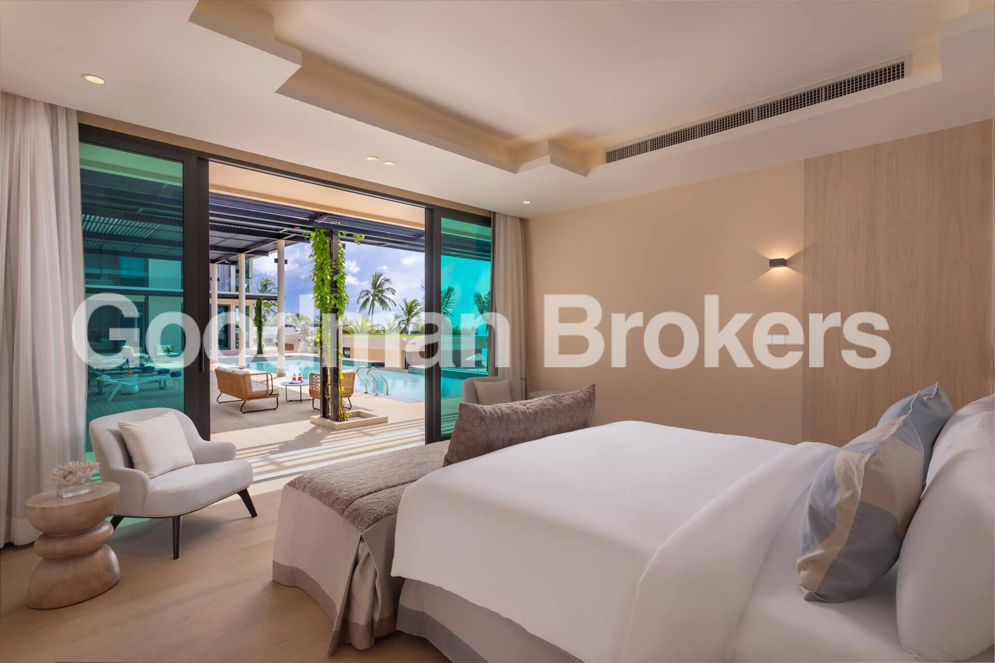 Each of the 6 bedrooms is furnished with a king size bed and an ensuite bathroom finished to luxury standards. Spacious lounge areas and workspaces enhance comfort and convenience. Two suites are positioned as standalone bungalows with terraces facing the pool and the ocean, providing elevated privacy and scenic vantage points.