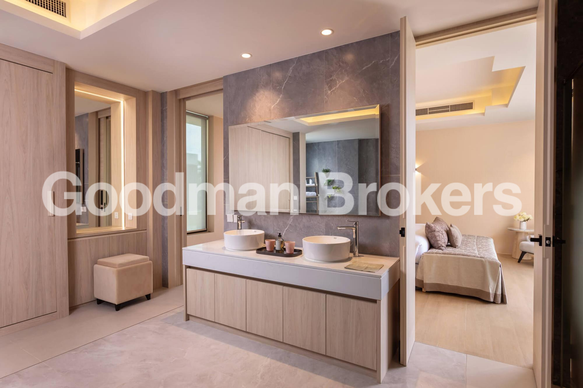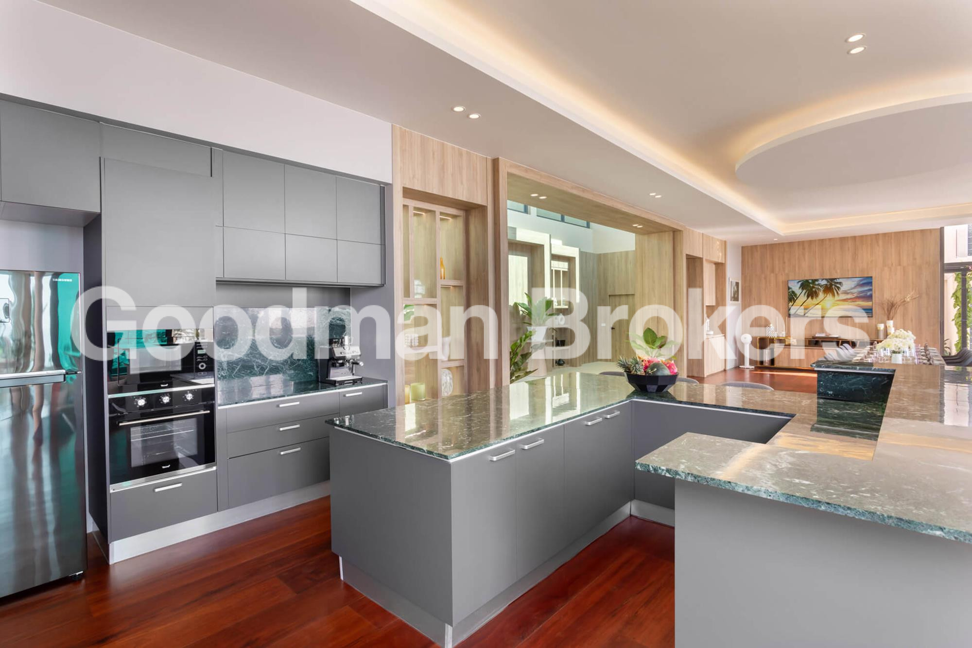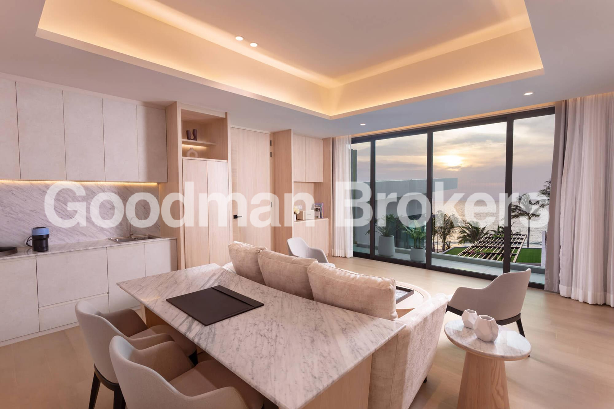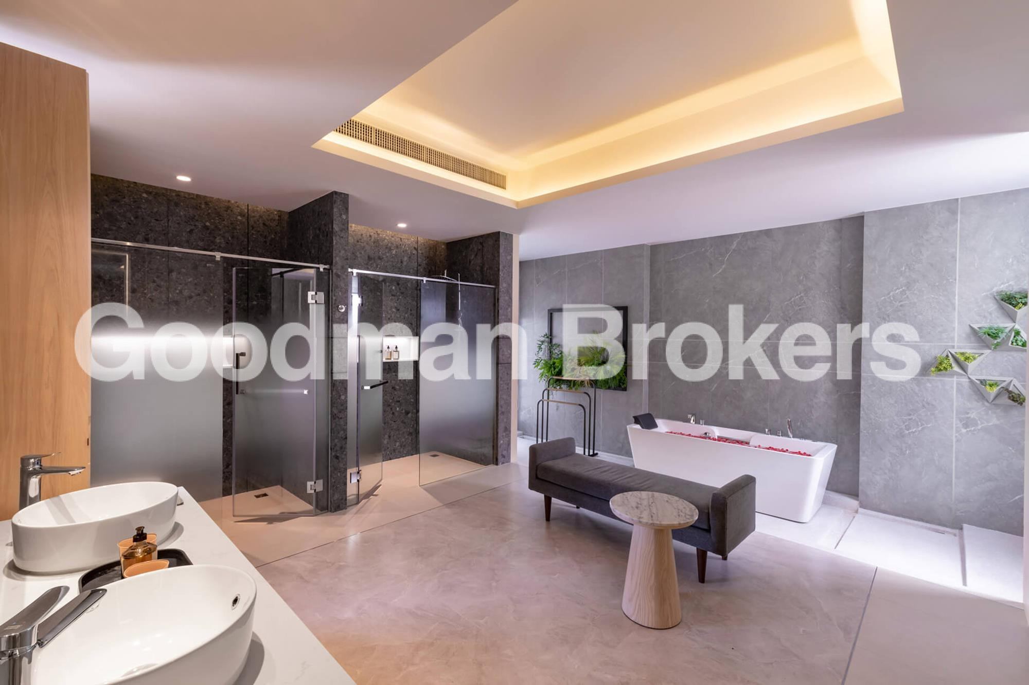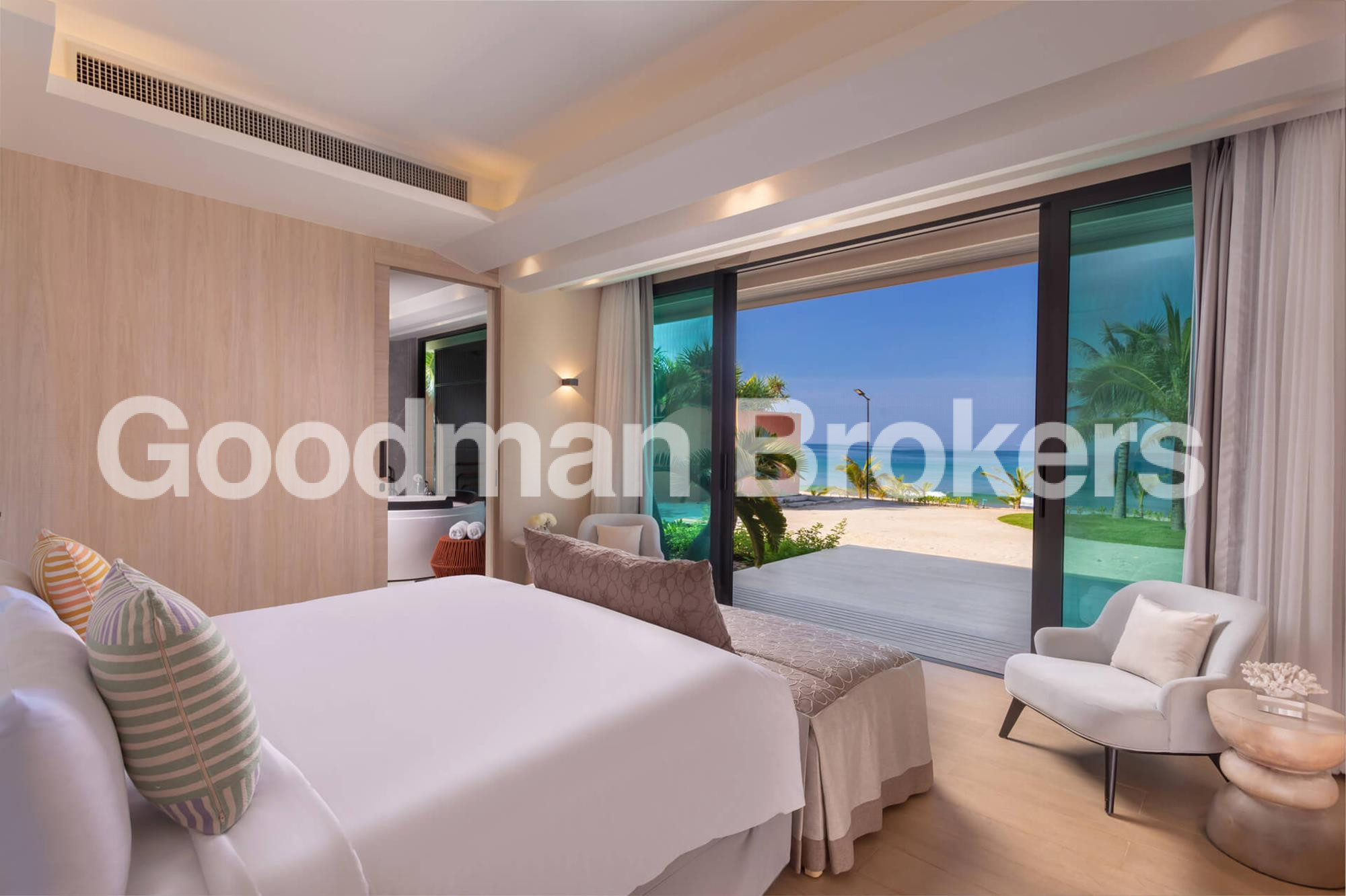 Each of the 6 bedrooms is furnished with a king size bed and an ensuite bathroom finished to luxury standards. Spacious lounge areas and workspaces enhance comfort and convenience. Two suites are positioned as standalone bungalows with terraces facing the pool and the ocean, providing elevated privacy and scenic vantage points.