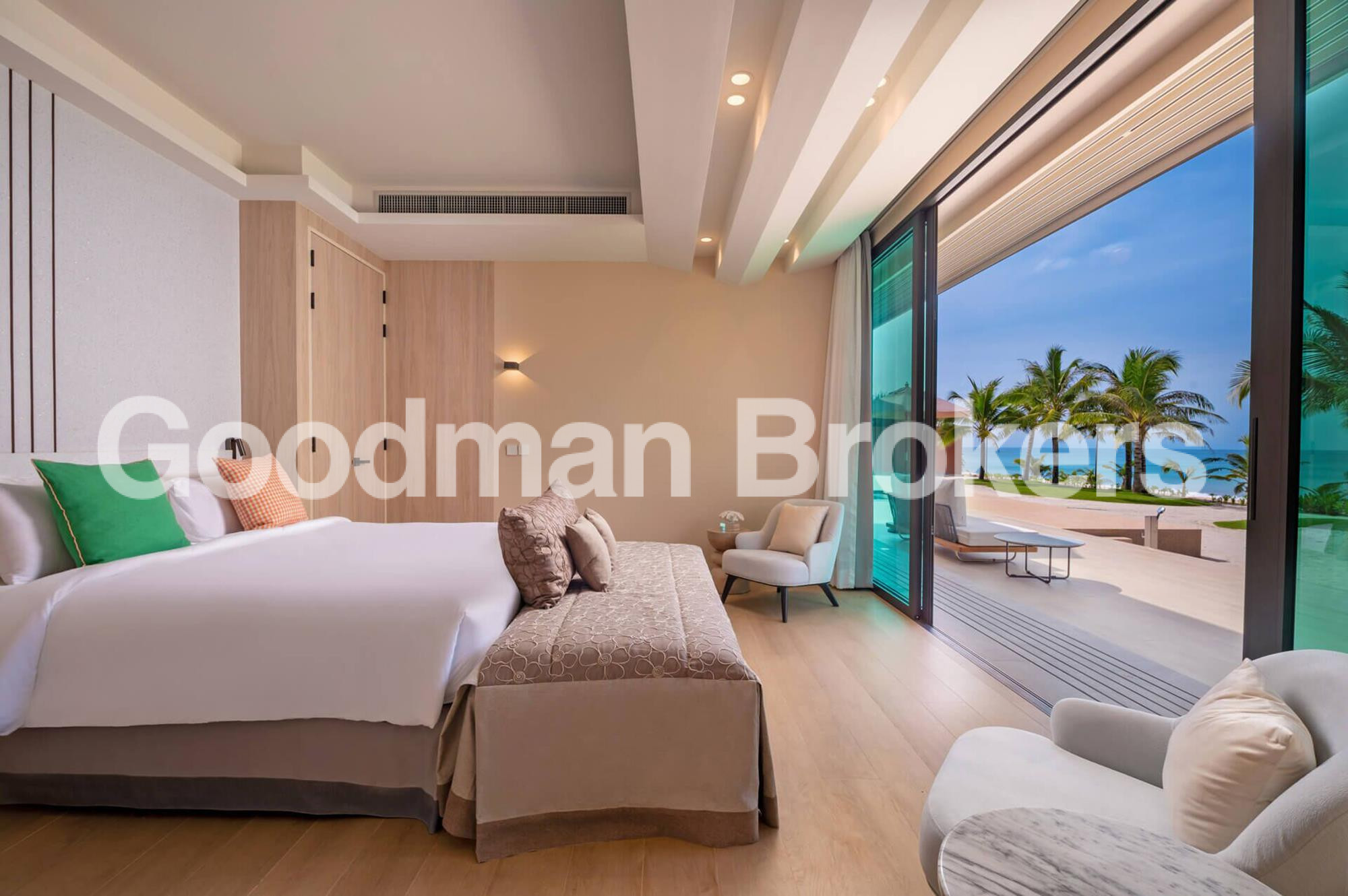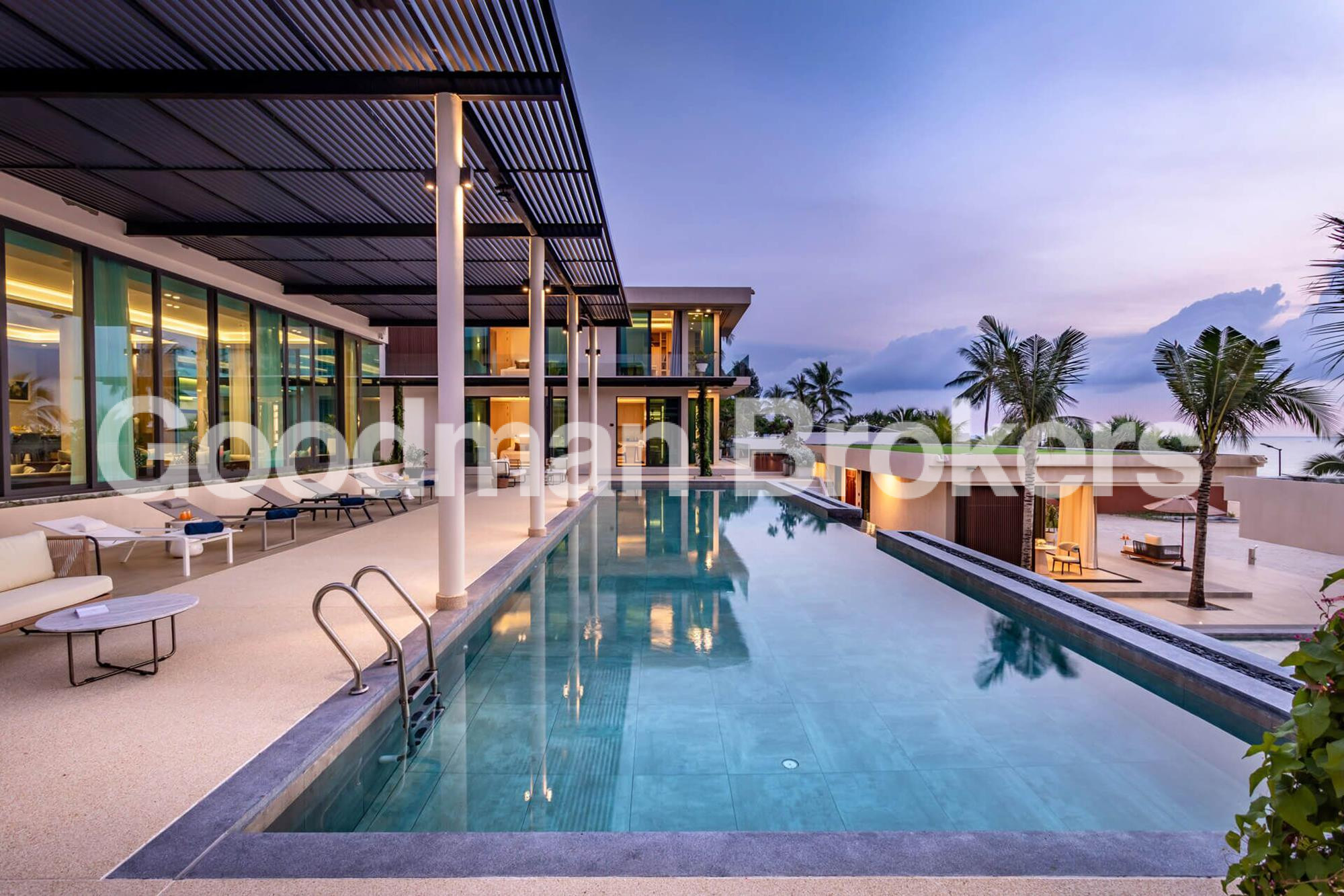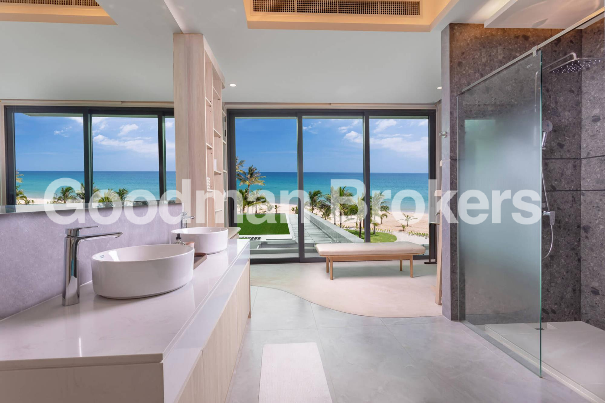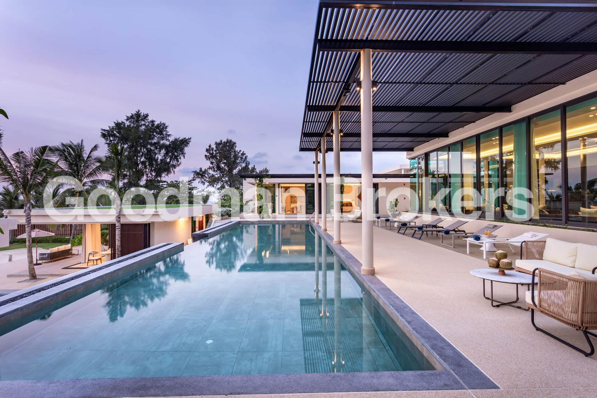 Distinguished 6 bedroom beachfront villa for rent in Natai presents an exceptional combination of refined comfort, contemporary design, and absolute privacy. Located on an expansive stretch of immaculate shoreline, the estate spans more than 4000 sq.m., offering direct access to one of the most secluded beaches in the region.