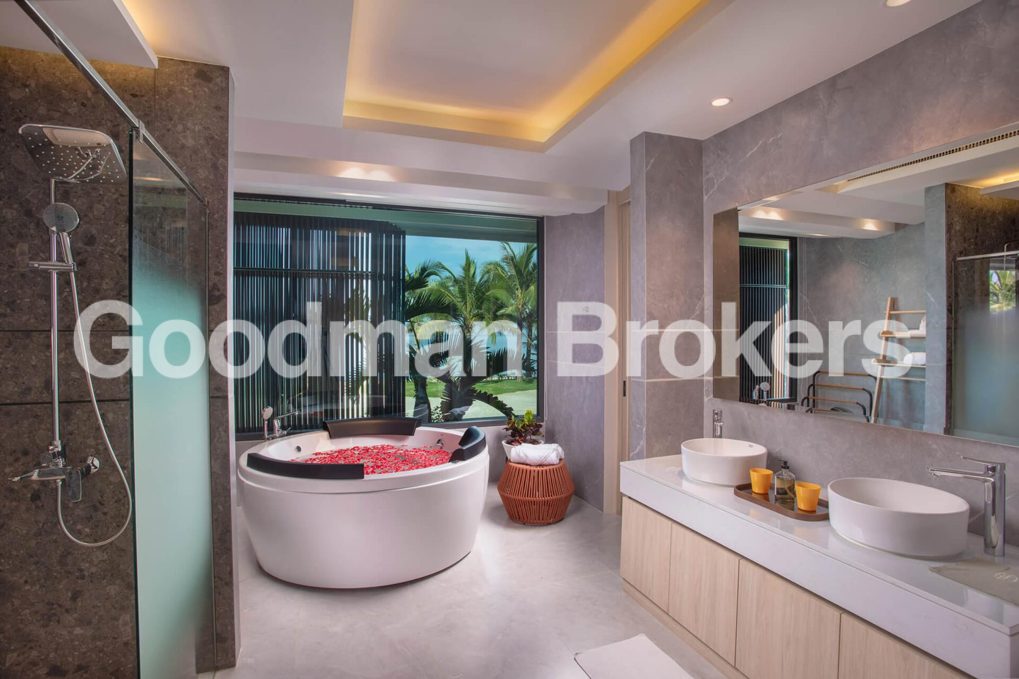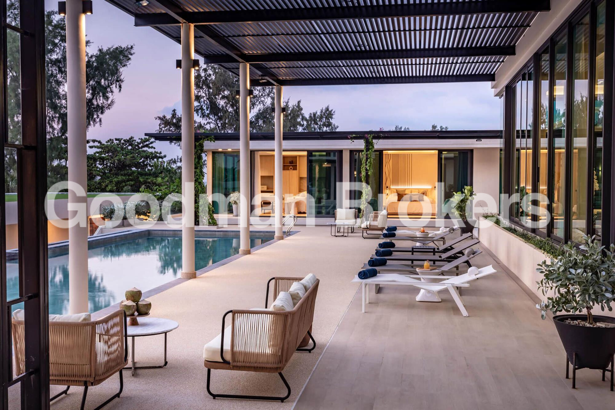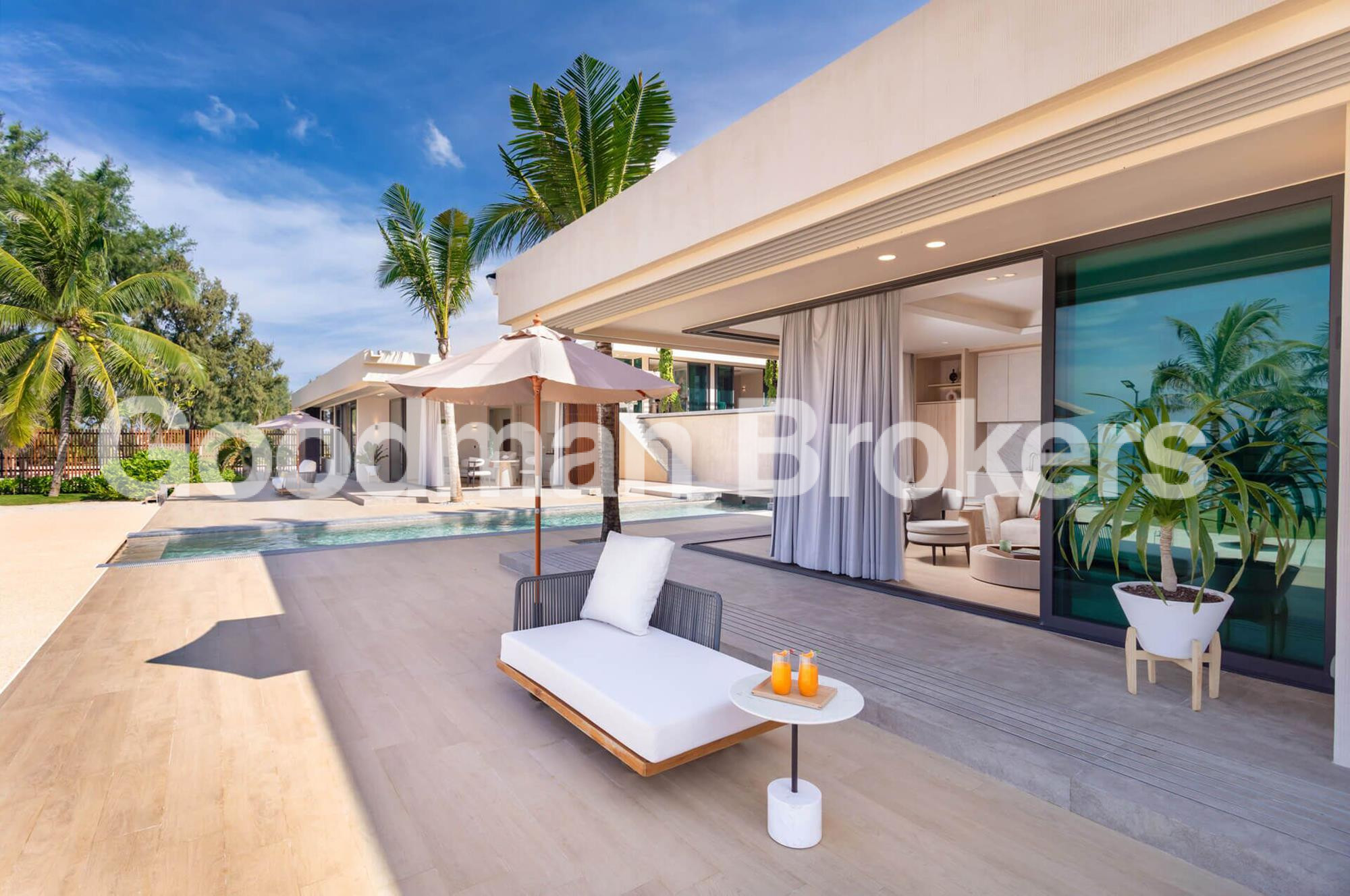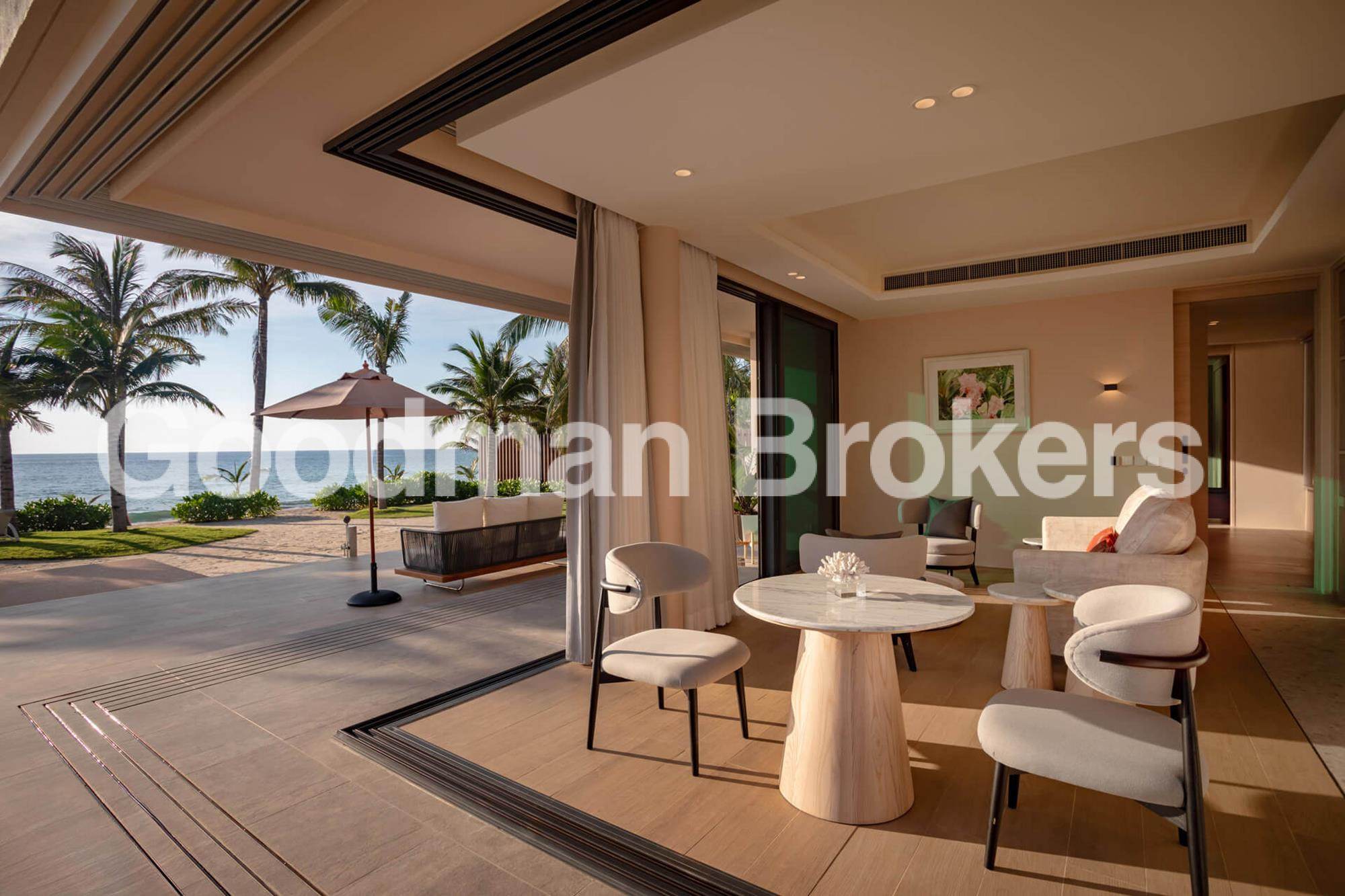Distinguished 6 bedroom beachfront villa for rent in Natai presents an exceptional combination of refined comfort, contemporary design, and absolute privacy. Located on an expansive stretch of immaculate shoreline, the estate spans more than 4000 sq.m., offering direct access to one of the most secluded beaches in the region.