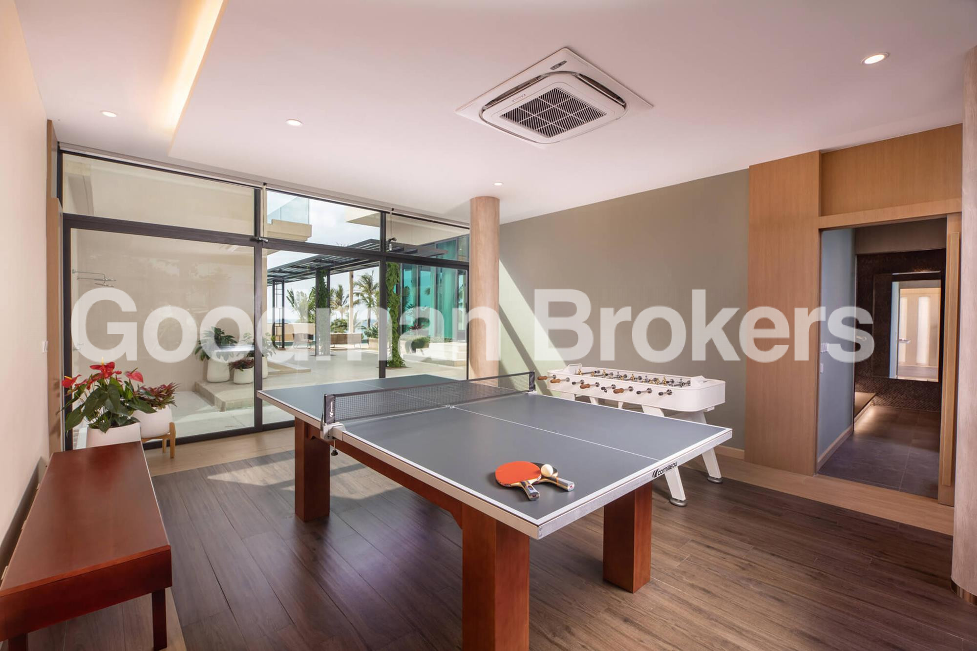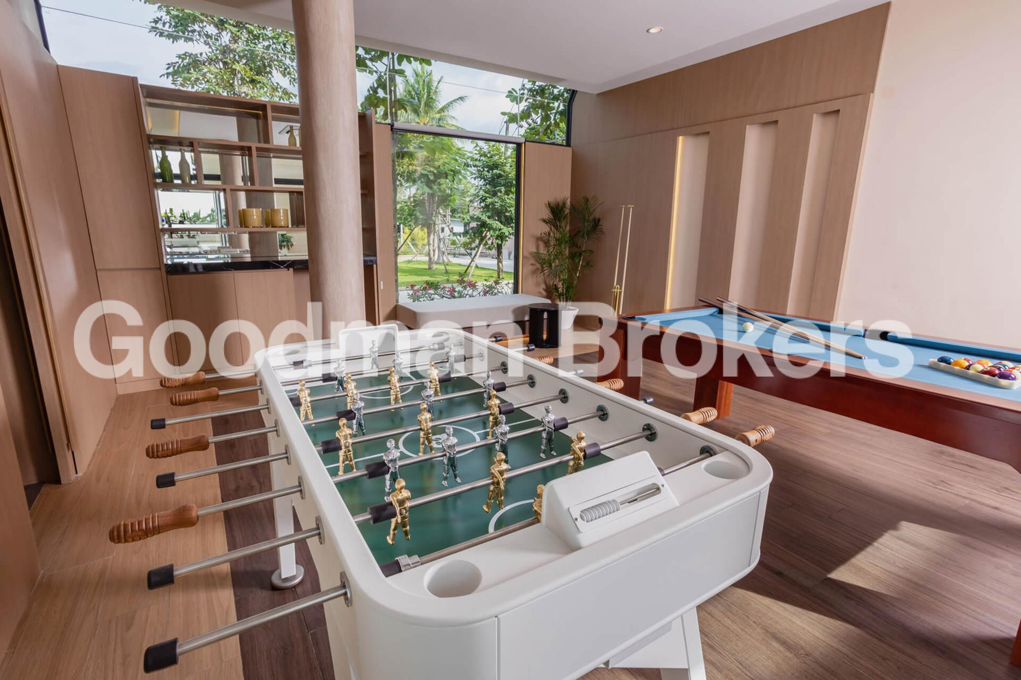 The villa offers a full range of leisure and wellness facilities. A dedicated games room features foosball, a full size pool table, and table tennis, creating an enjoyable environment for guests of all ages. The private spa suite includes a jacuzzi, steam room, and sauna, designed to support complete rejuvenation. A fully equipped gym is available for maintaining fitness routines in a professional setting.