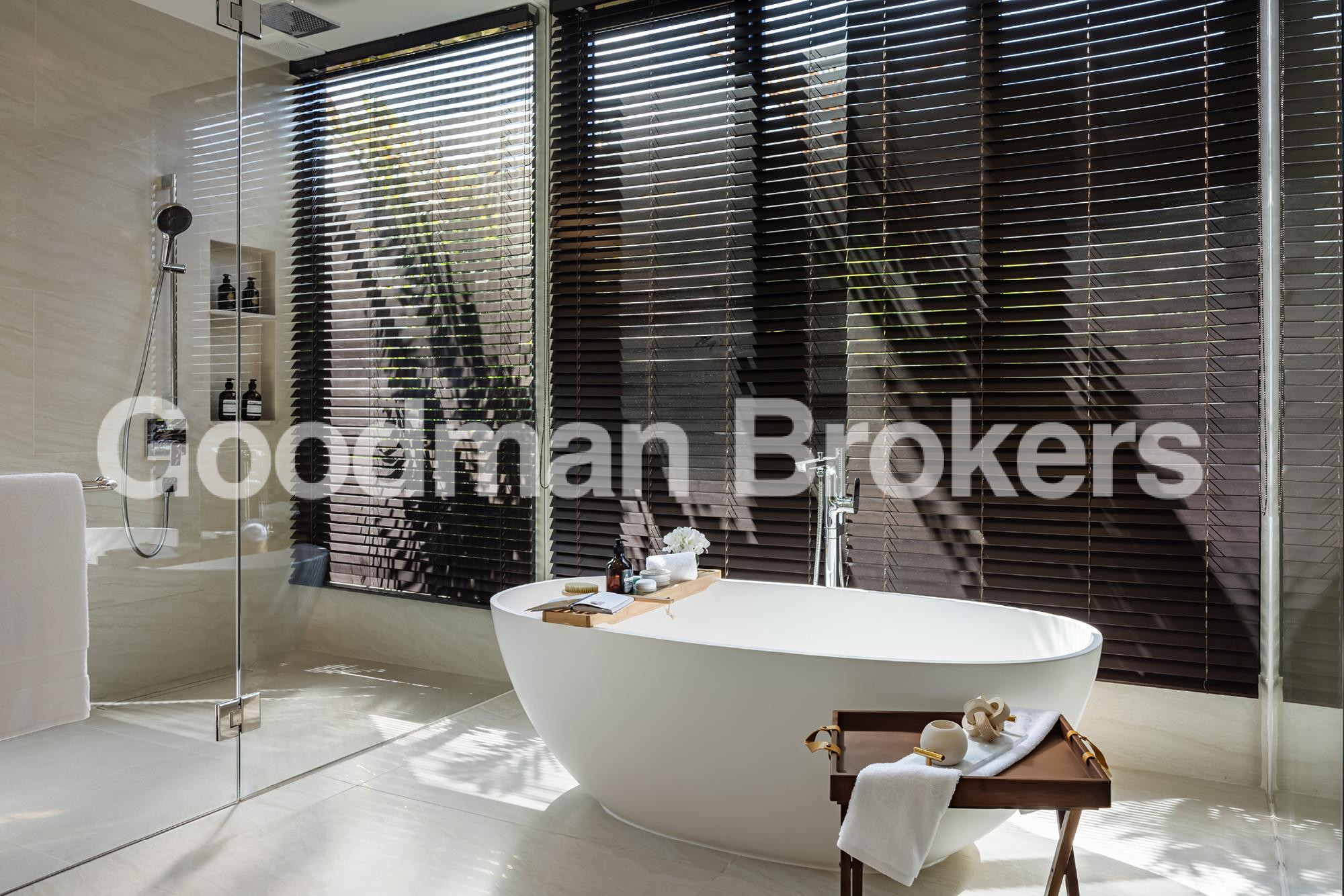 The development offers a saltwater swimming pool with integrated jacuzzi, extended sun lounge areas and a designated outdoor BBQ space. All pools are equipped with safe entry stairs. Interiors feature a ceiling height of 4.5 meters in the living and dining areas, complemented by teak wood finishes. Every villa includes two master bedrooms and all bedrooms are en suite with walk in closets, ensuring an elevated residential experience.
