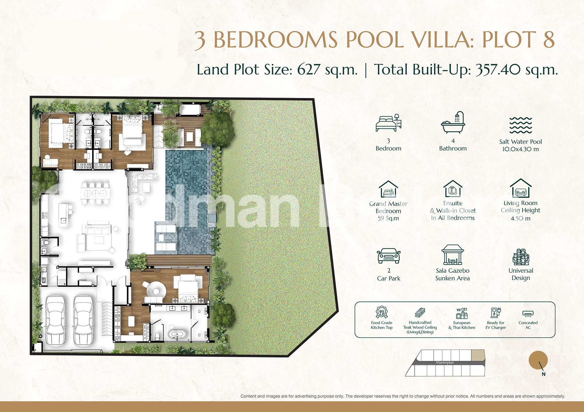 3 bedroom villas offer an average land size of 423 sq.m., with 357 sq.m., of built up area.