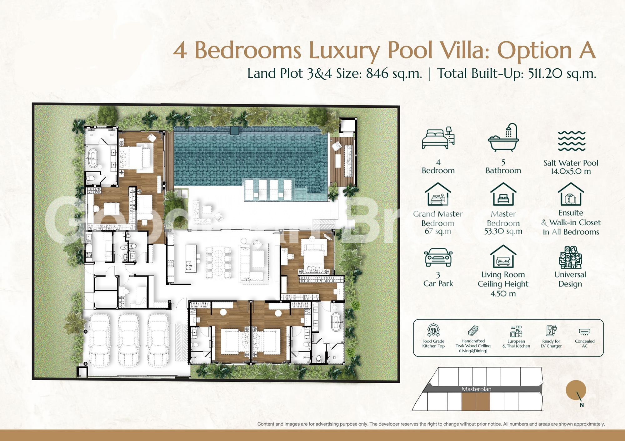 4 bedroom villas offer an average land size of 626 sq.m., with 511 sq.m., of built up area.