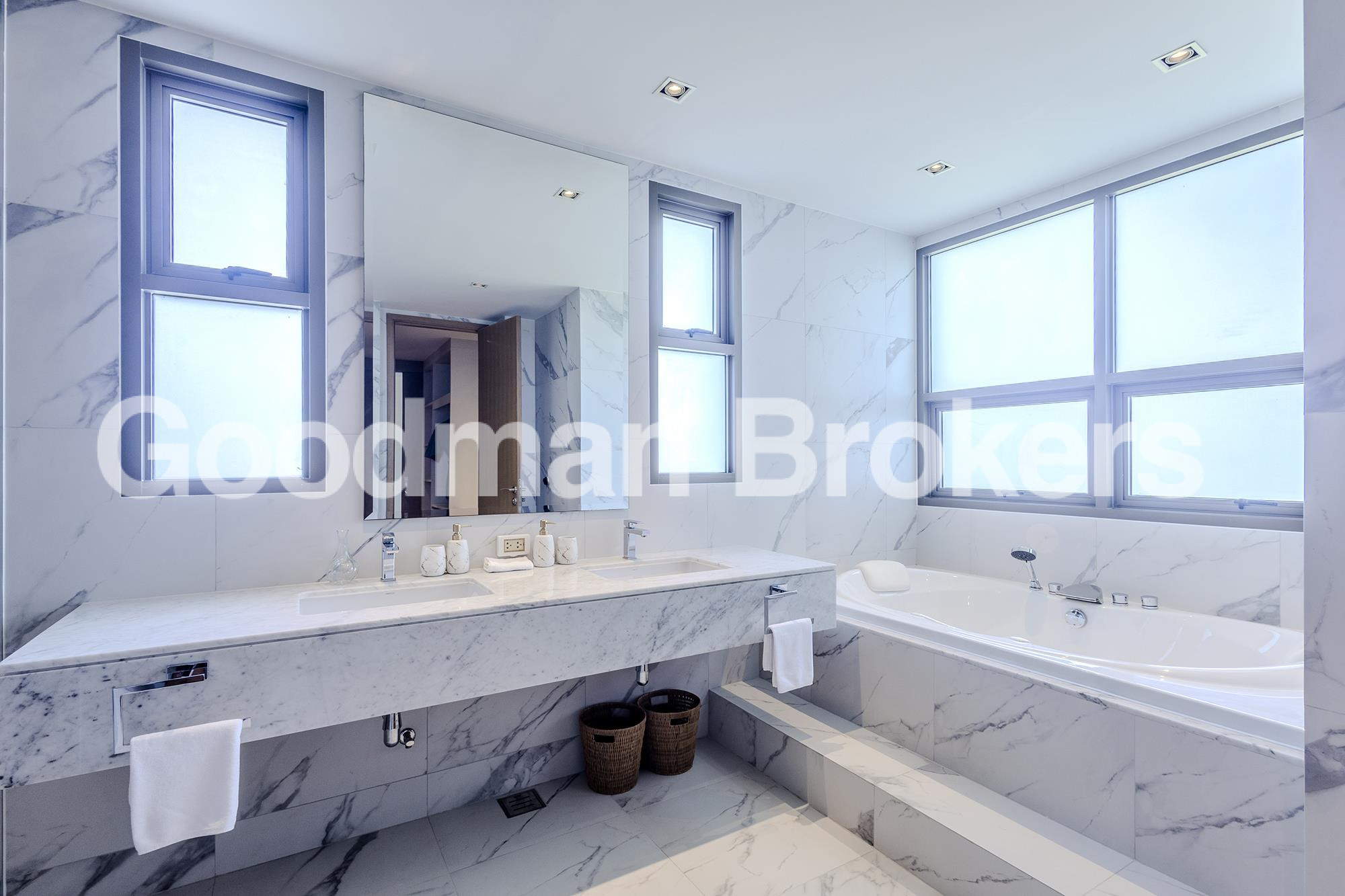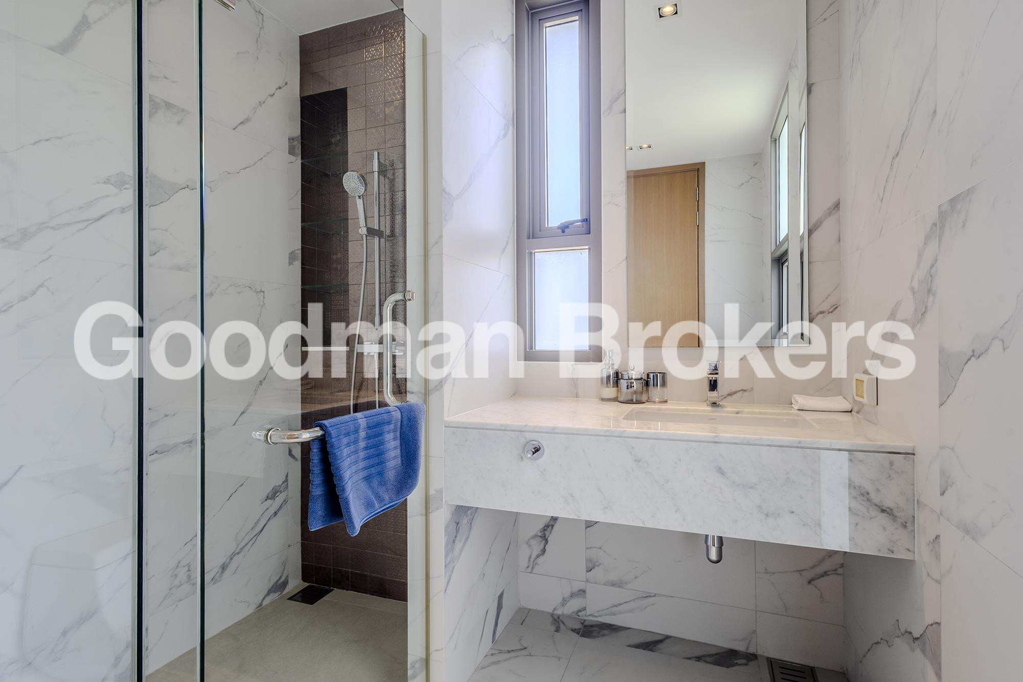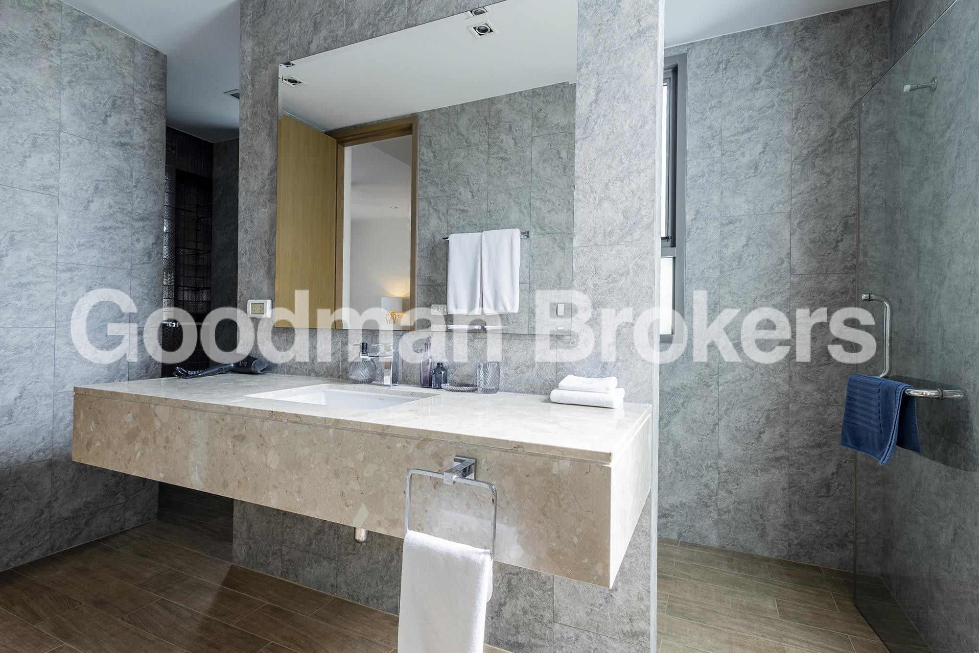 The property includes 4 spacious bedrooms, 1 maid room and 5 bathrooms. The master suite is positioned in a private section of the villa and includes an en suite bathroom and built in wardrobes. All bedrooms benefit from open views of landscaped gardens and the lake, reinforcing privacy and residential comfort.