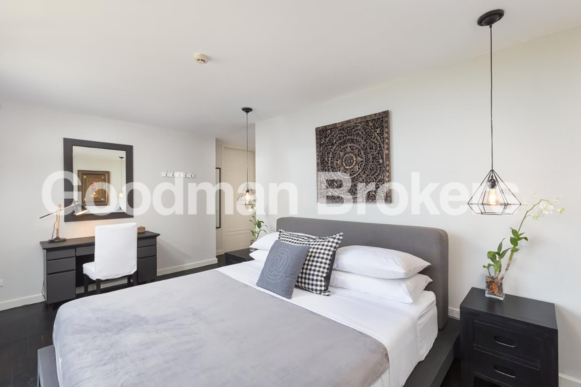 The lower level accommodates three guest bedrooms, all with en suite bathrooms. This configuration provides privacy for family members or visitors. The same level also includes maid’s quarters, substantial storage areas, and direct access to the landscaped garden.