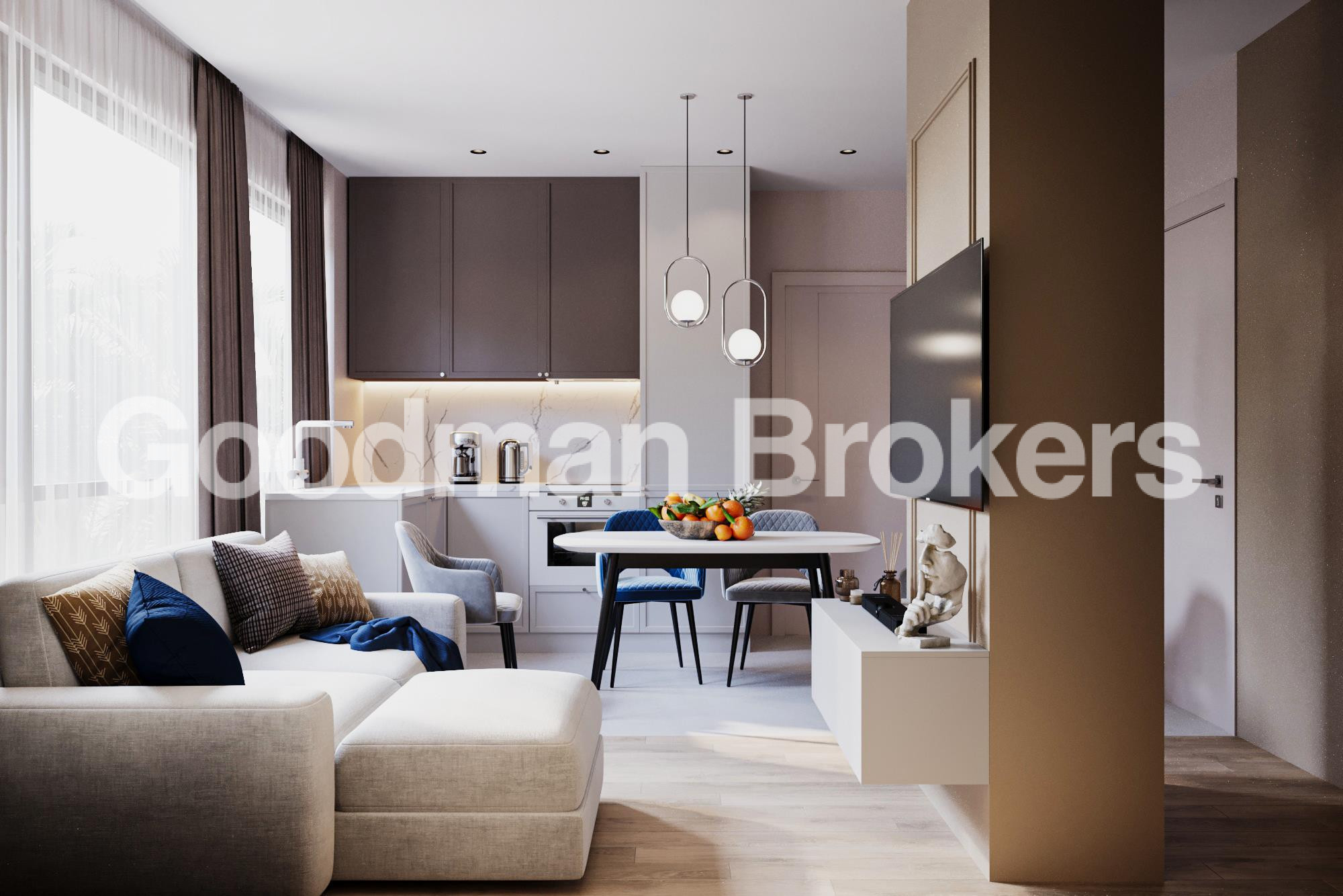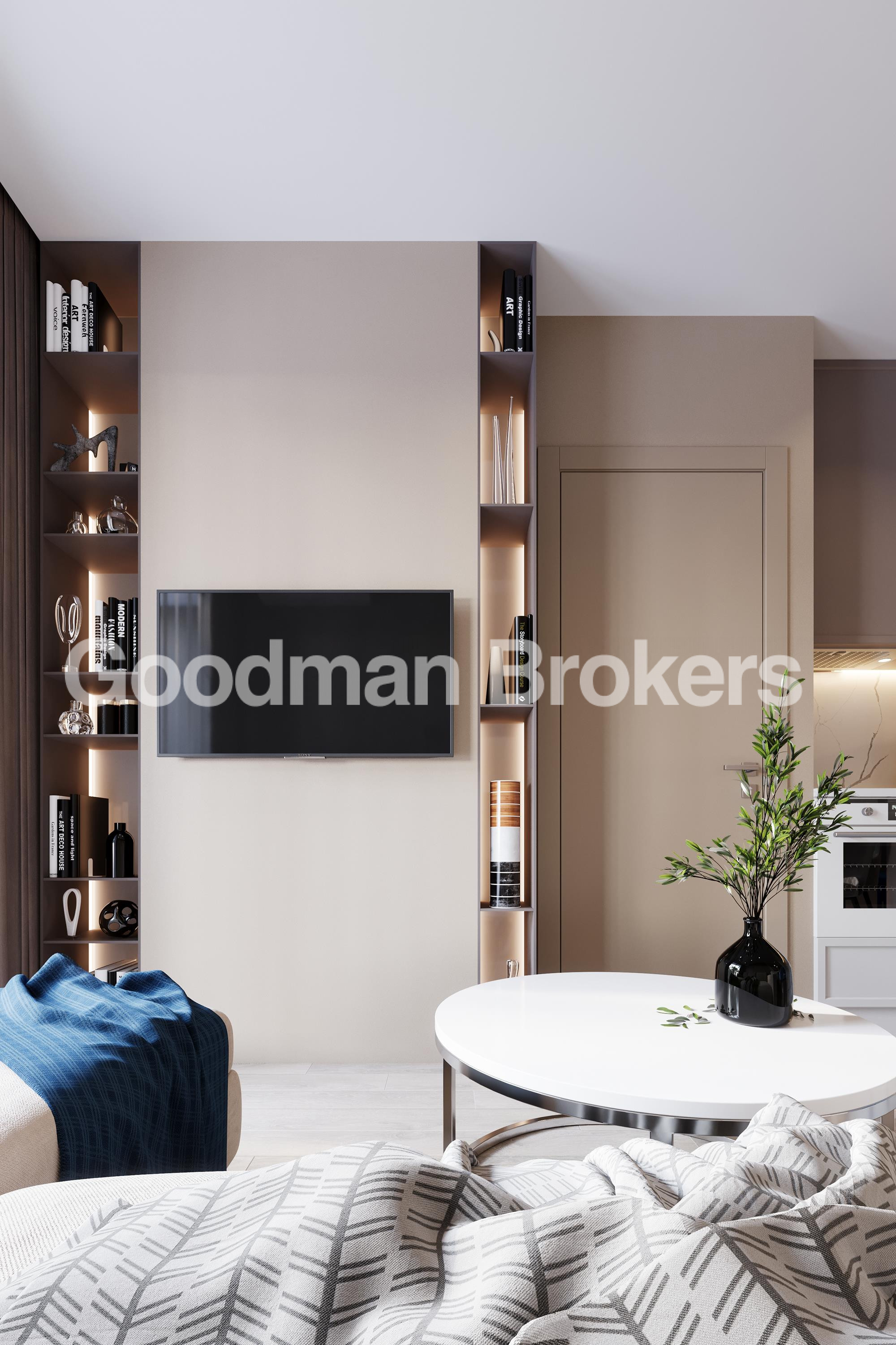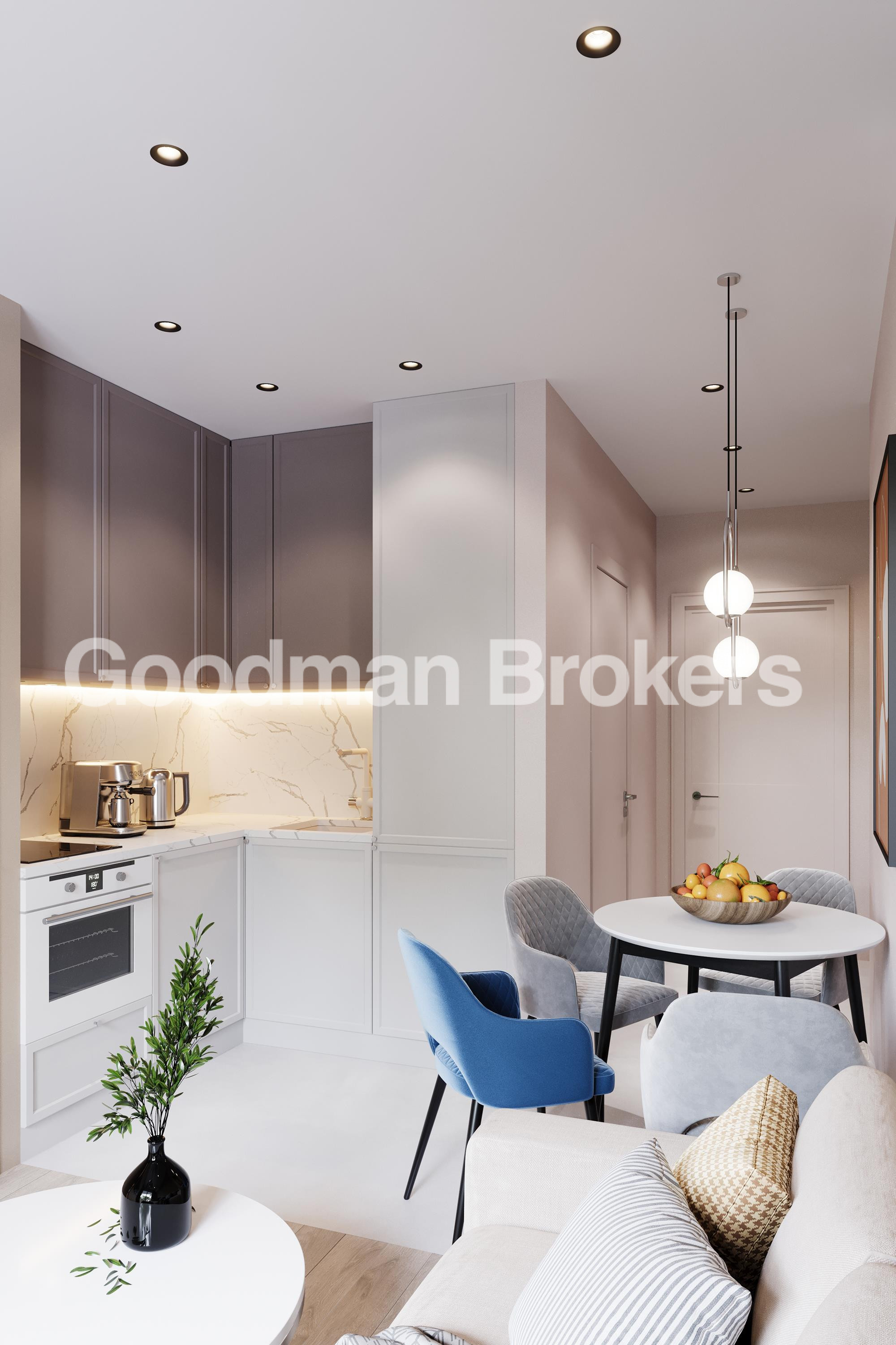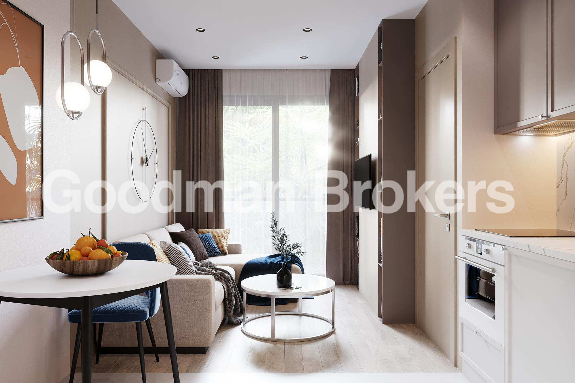 Studio apartment or with 1 bedroom and living room.