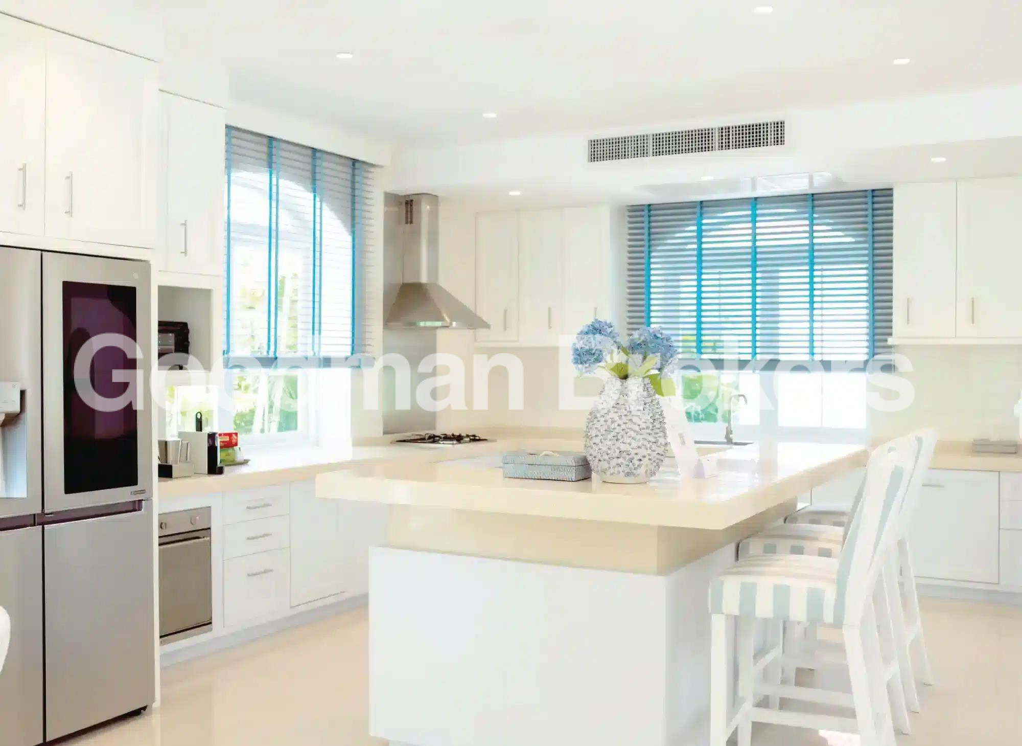 Additional interior spaces include a private office with ocean views, a media room and a guest bathroom, all arranged with practical storage solutions throughout. A separate building houses a professional chef’s kitchen and self contained staff quarters, which may also be adapted for guest accommodation.