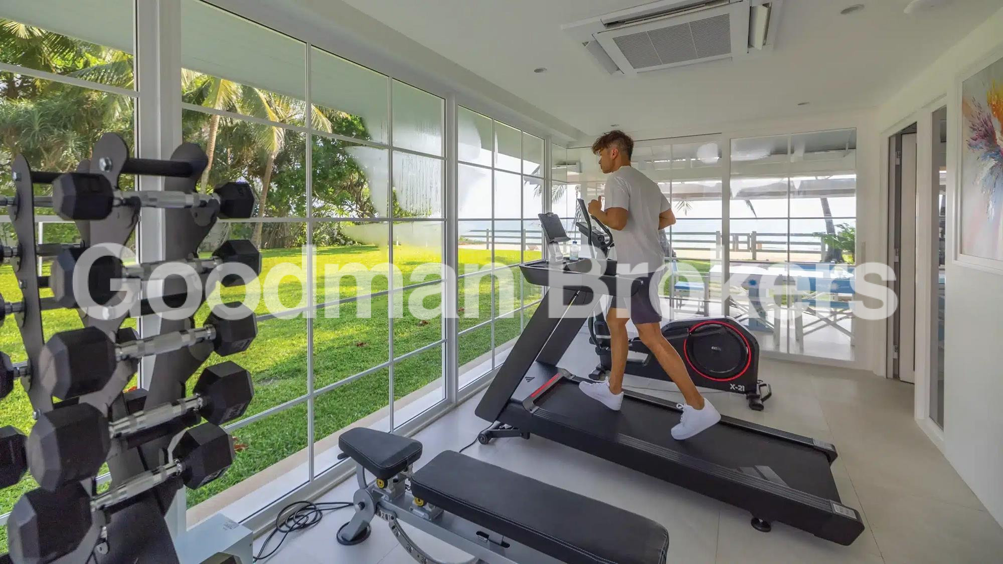 Outdoor areas are designed for both private use and entertaining. Covered lounge and dining spaces connect to the swimming pool and landscaped lawns. A beachfront sala provides an additional social area with integrated sound system. A fully enclosed wellness zone includes a gym, steam room and private massage space.